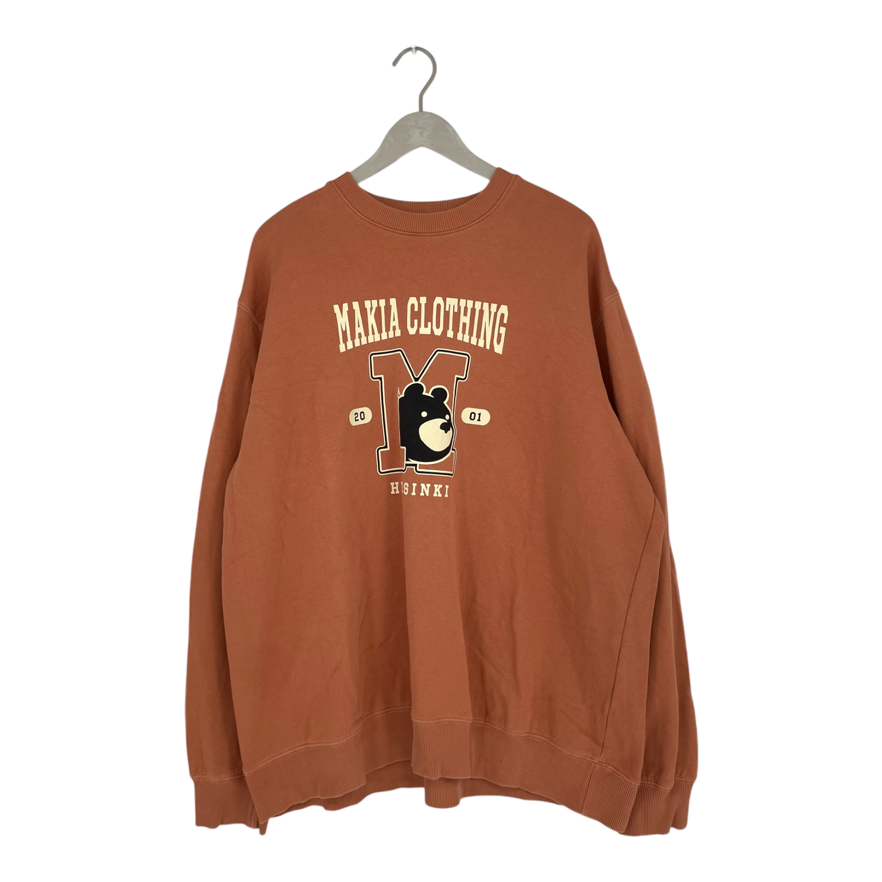 Makia basic sweatshirt with a bear print on the front. The print shows slight signs of wear, as shown in the picture.