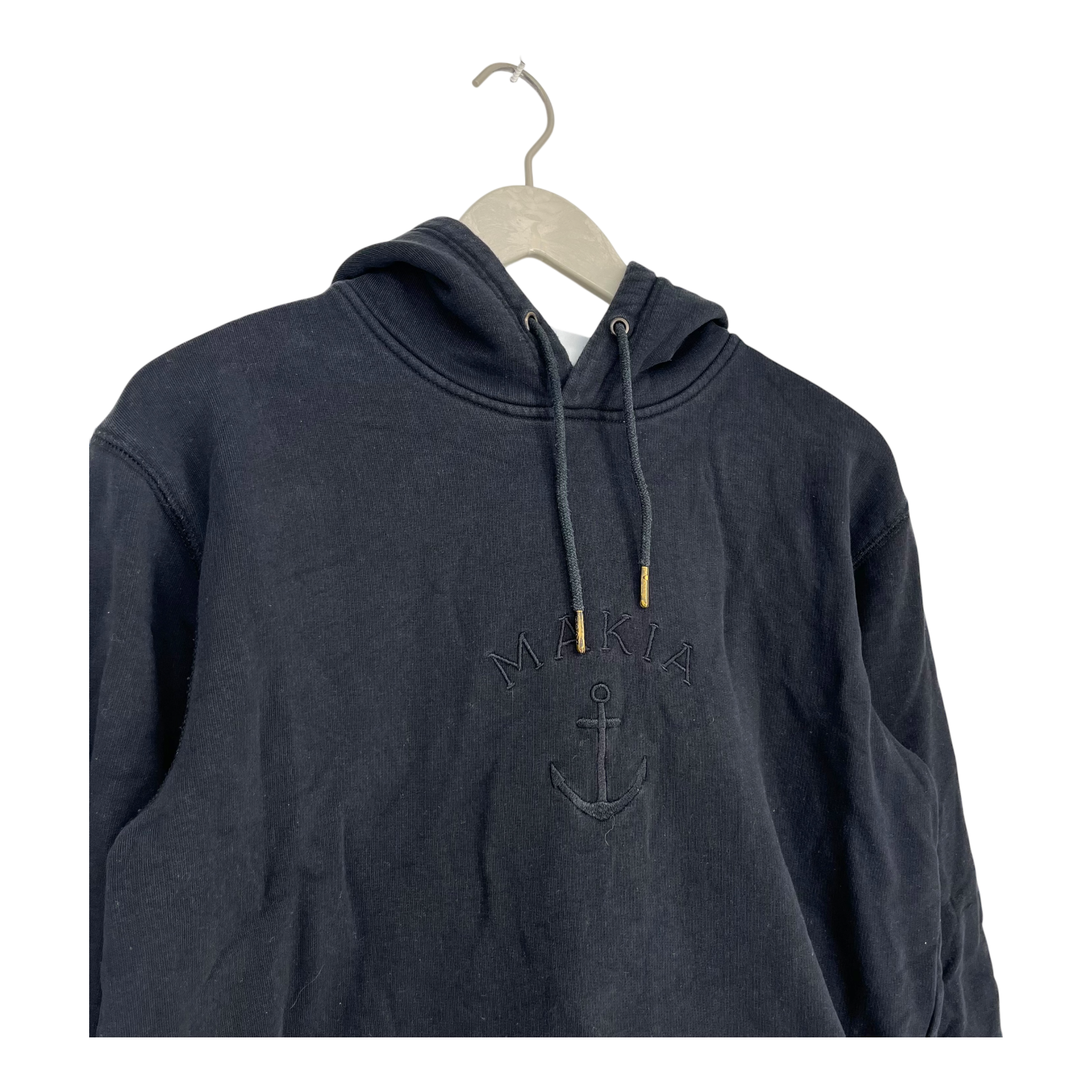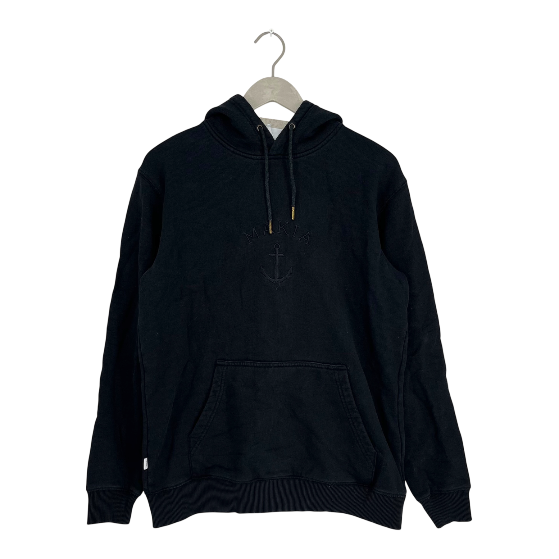 Makia long sleeve hoodie sweatshirt is an athletic inspired hoodie with a anchor Makia logo on the chest.
