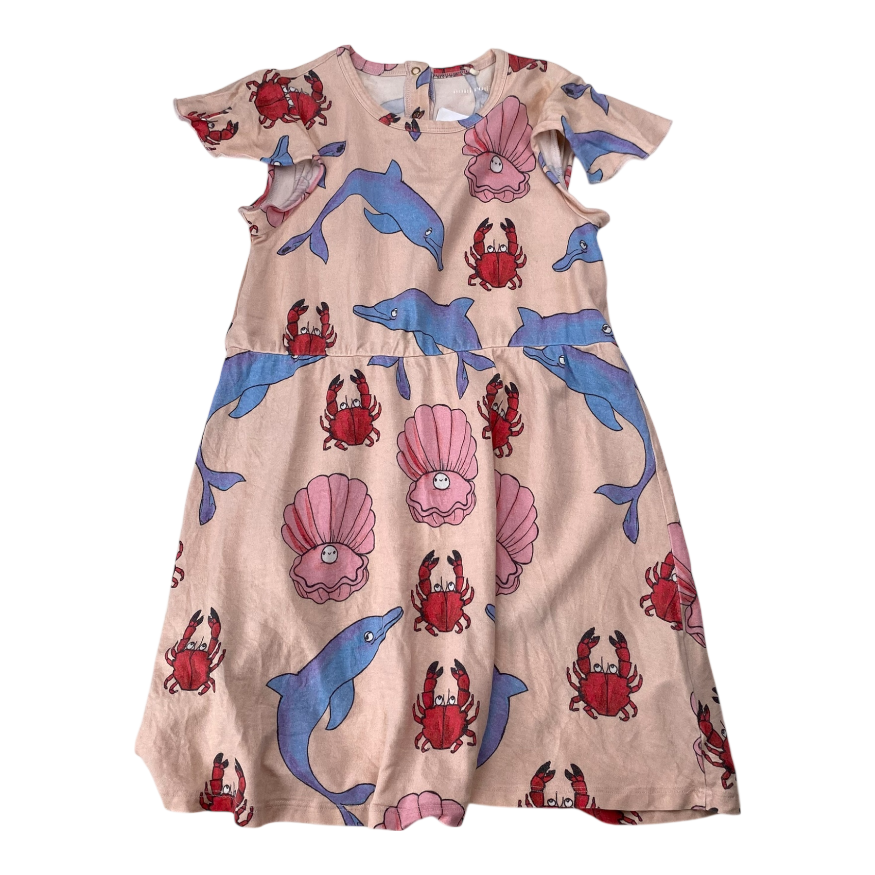 Mini Rodini t-shirt dress in sea animal print. The material has fluffed in use.