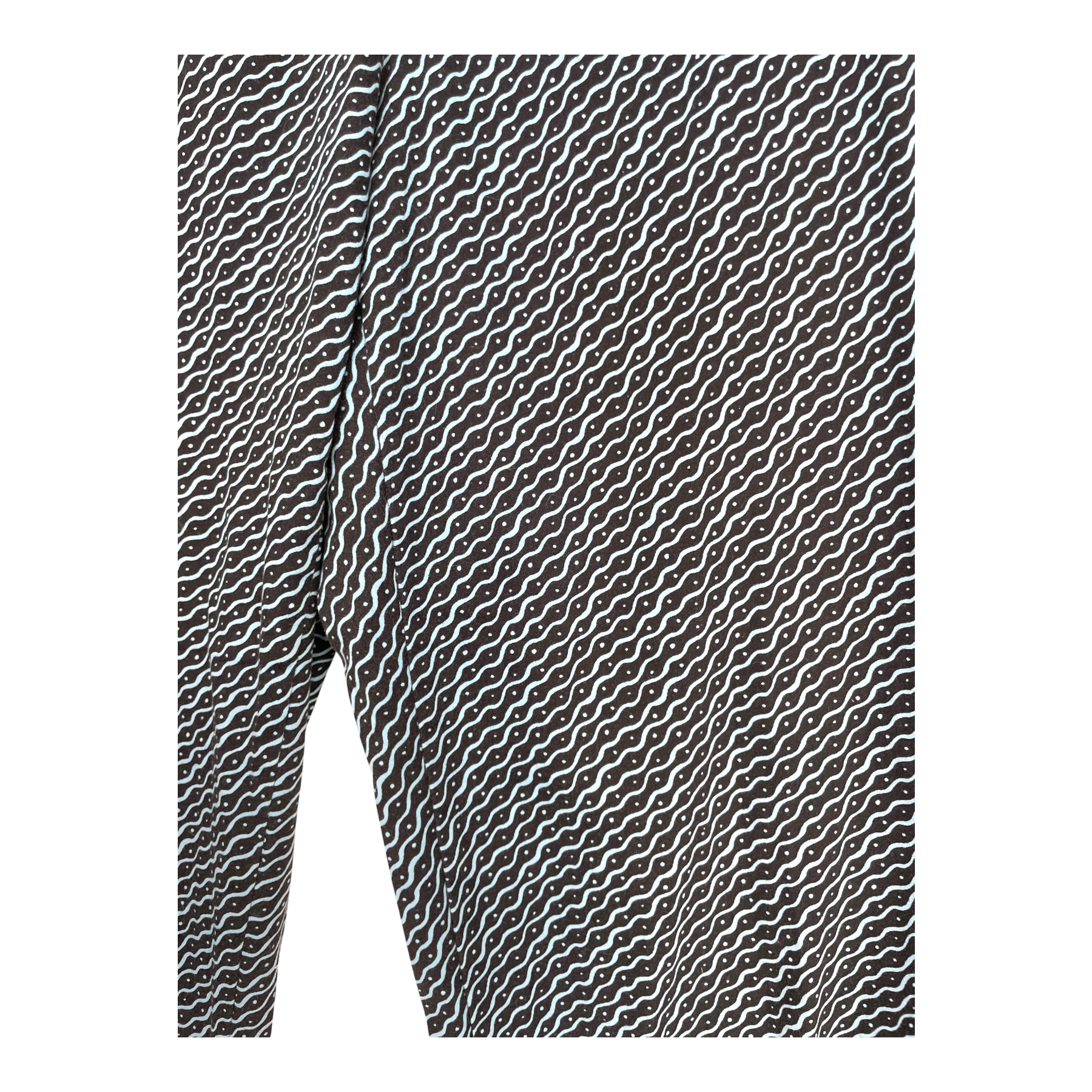 Marimekko pants from the Proto collection in the Raspa print. Zipper and button closure on the side for ease of dressing. The Proto collection was a collaboration between young designers and Marimekko that innovated fresh looks for the 00s from leftover fabrics. No material information on the laundry tag.