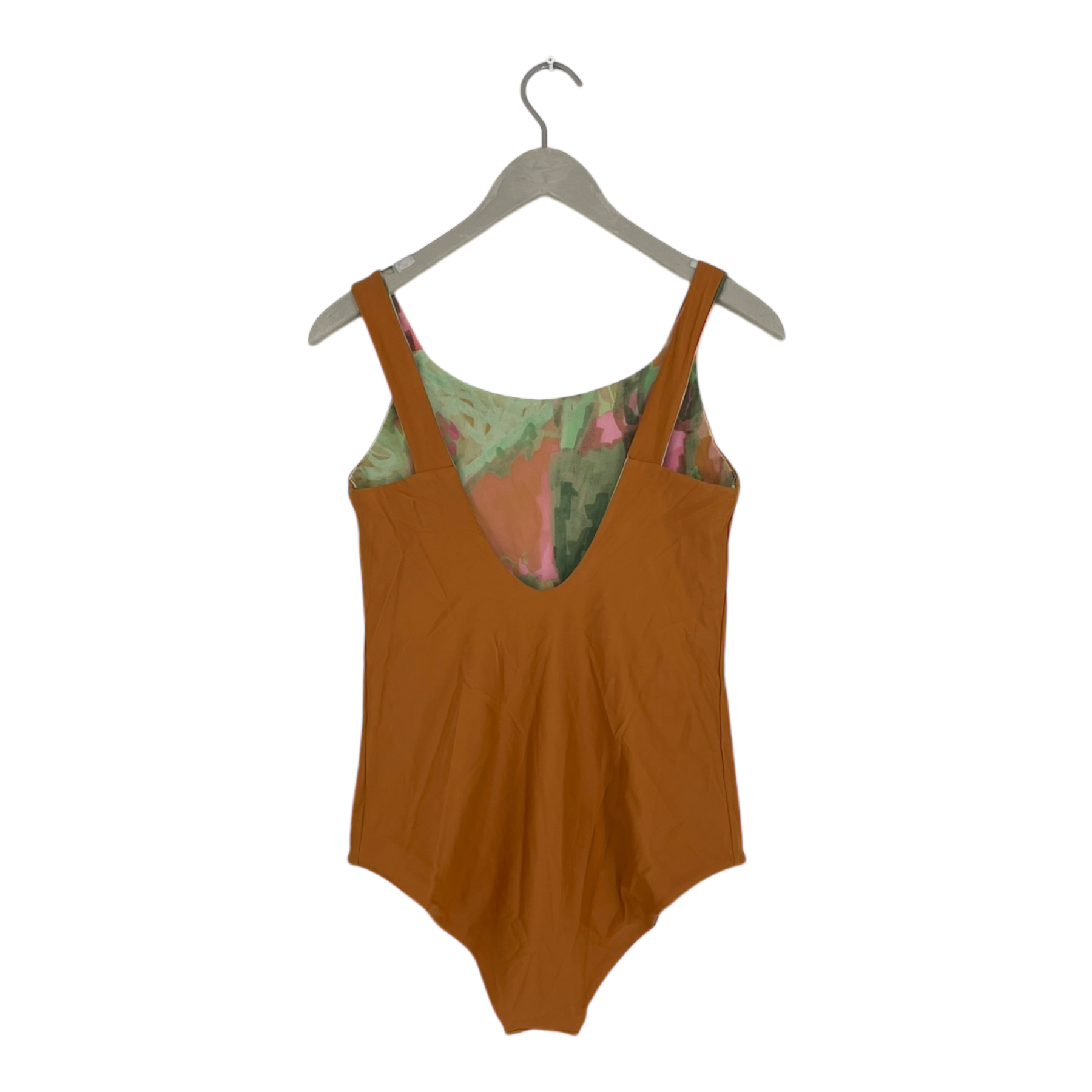 Lilja the label swim suit. The swimsuit is reversible, so you can wear either the calm, solid-colored side or the patterned side.