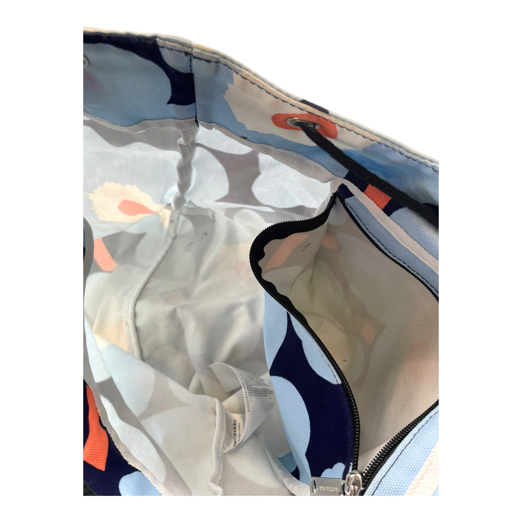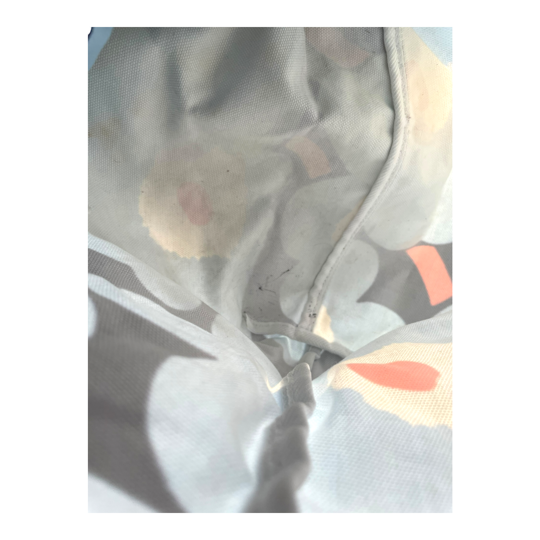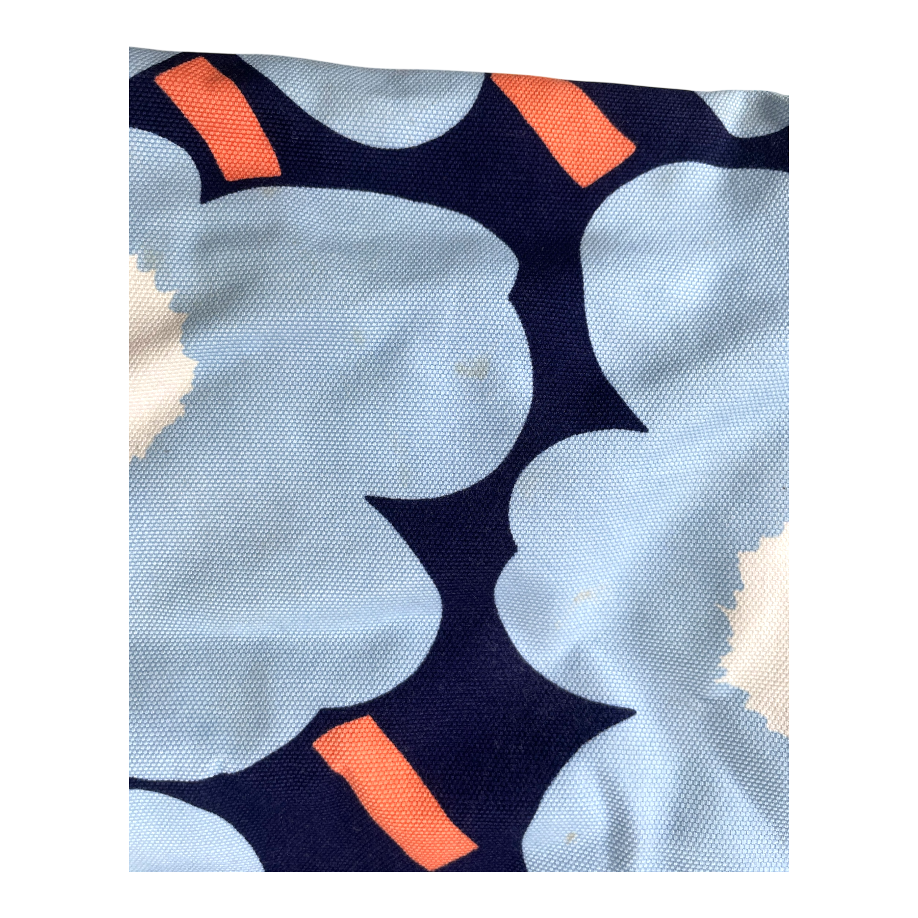 Marimekko Erika backpack in the Pieni Unikko print. The backpack has string and snap closure and adjustable straps. There is one smaller compartment with zipper on the inside.