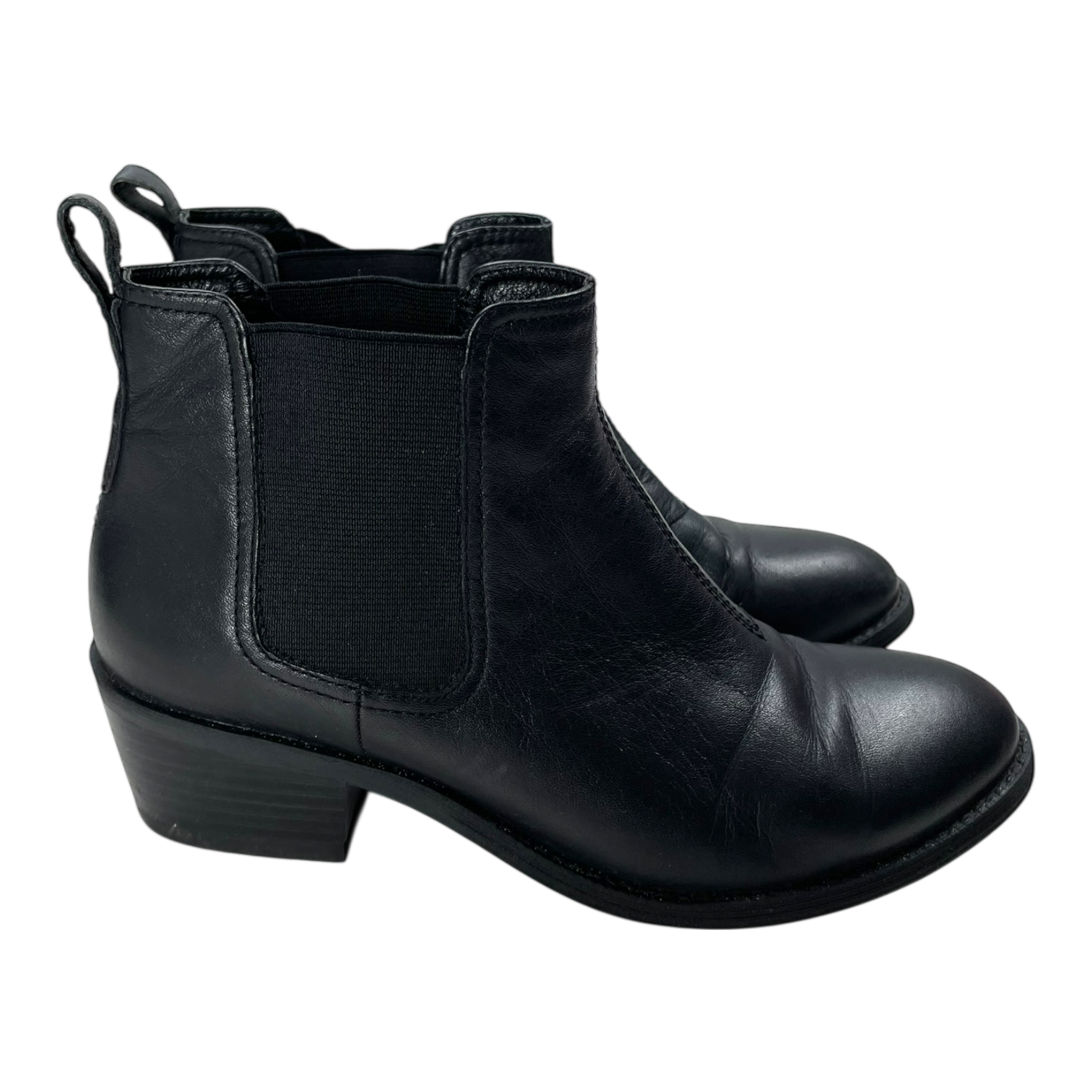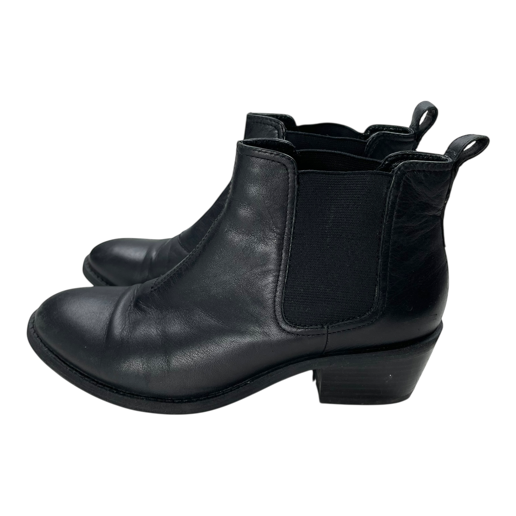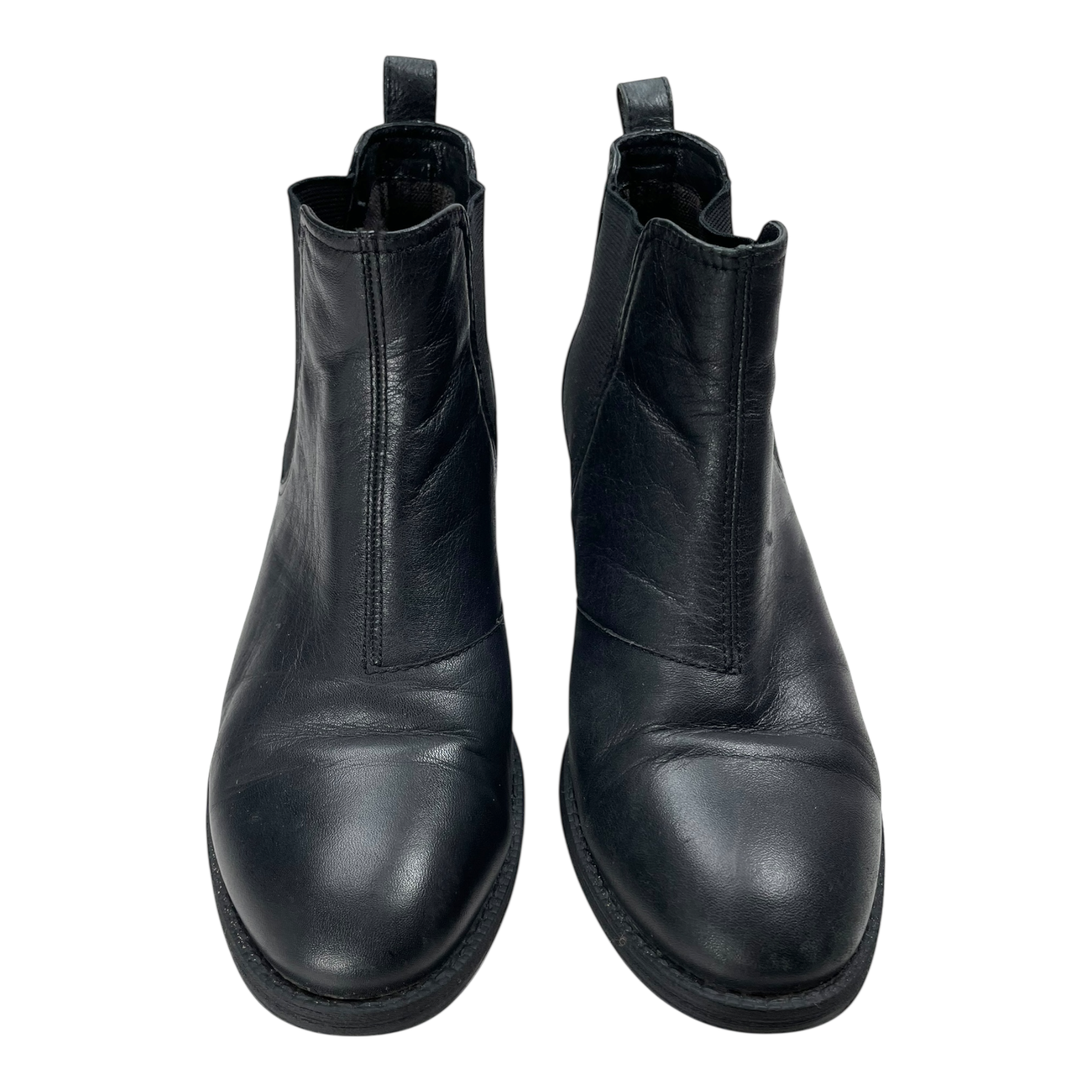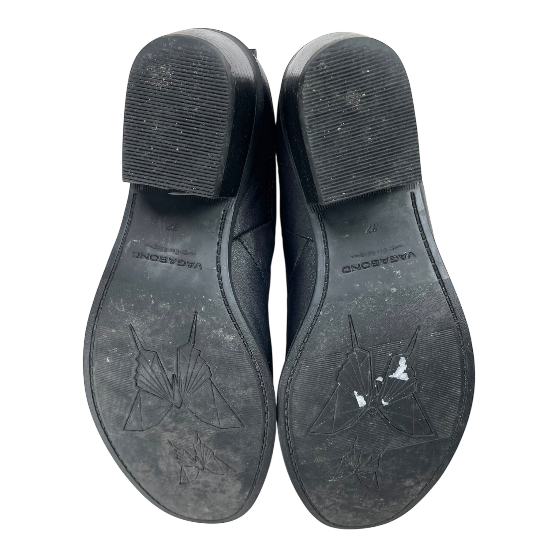 Vagabond heeled ankle boots in black. The heel tip is slightly worn, and there are some small scratches on the surface of the heel.