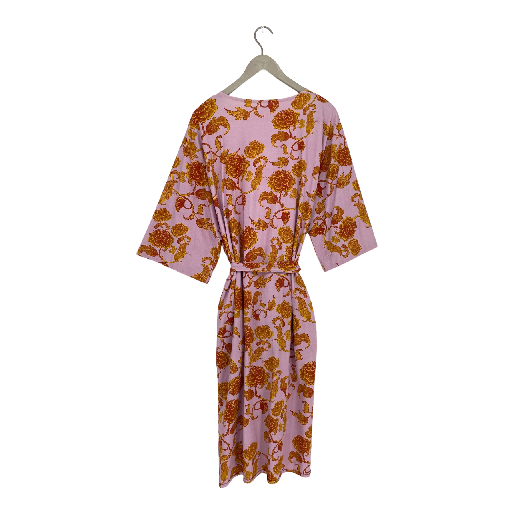Vimma tricot kaftan with side pockets ans separate belt. Kaftan have 1/2 long kimono style sleeves.