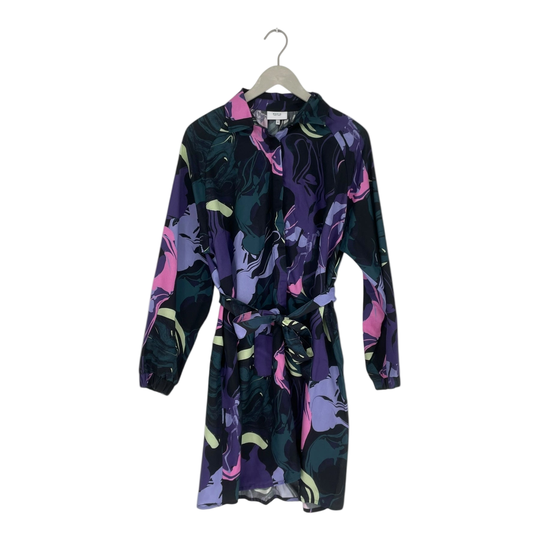 Makia Iiris is a mid-length A-line shirt dress with relaxed raglan sleeves. The fabric drapes beautifully, and the waist can be cinched with a belt for a more defined silhouette. Features a beautiful marble pattern.