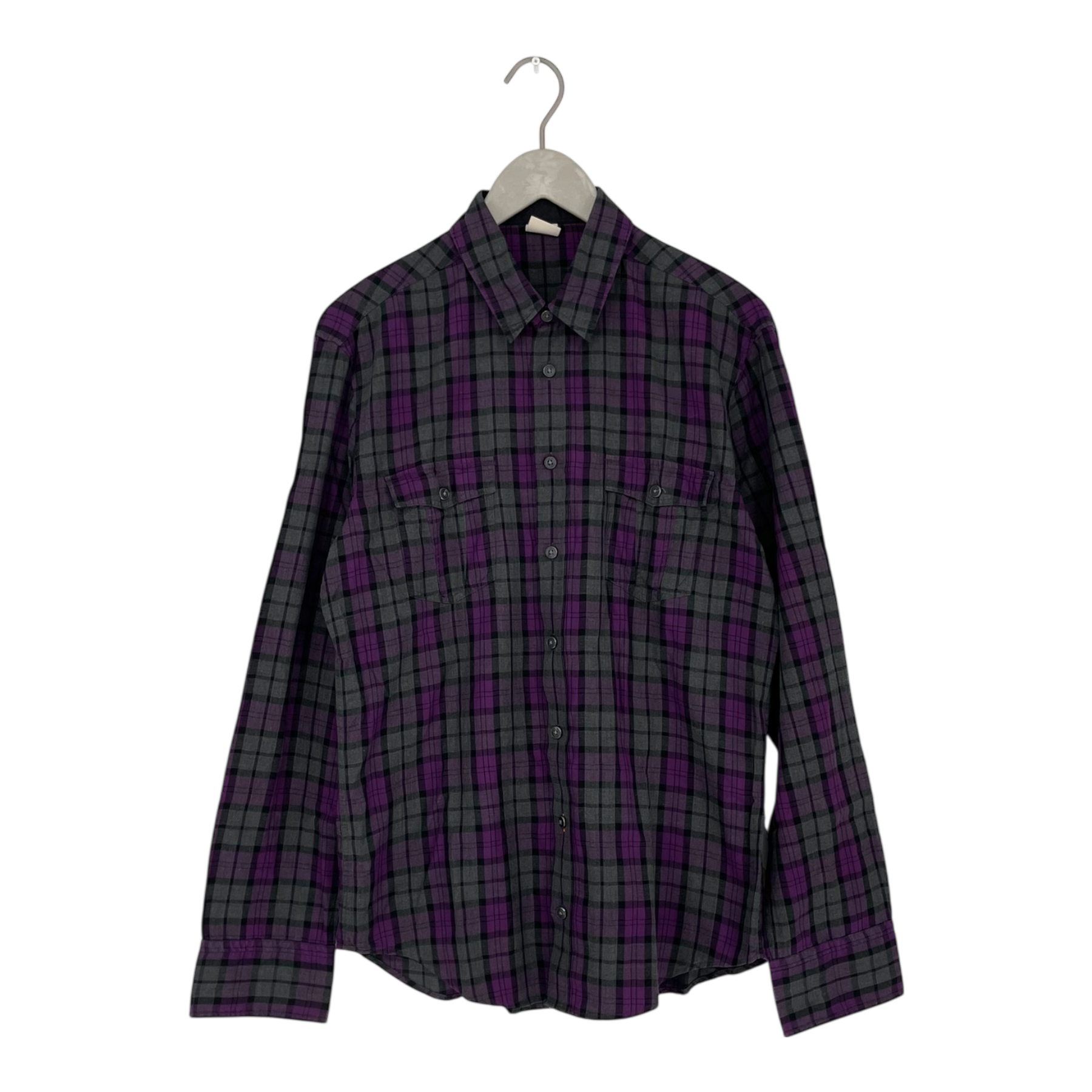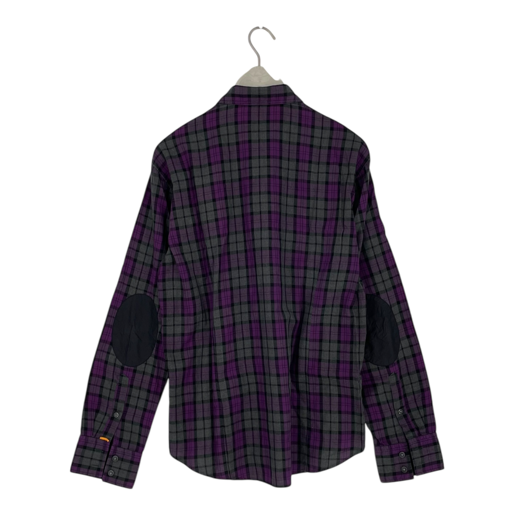 Hugo Boss men’s regular-fit collared shirt with two buttoned chest pockets on the front.