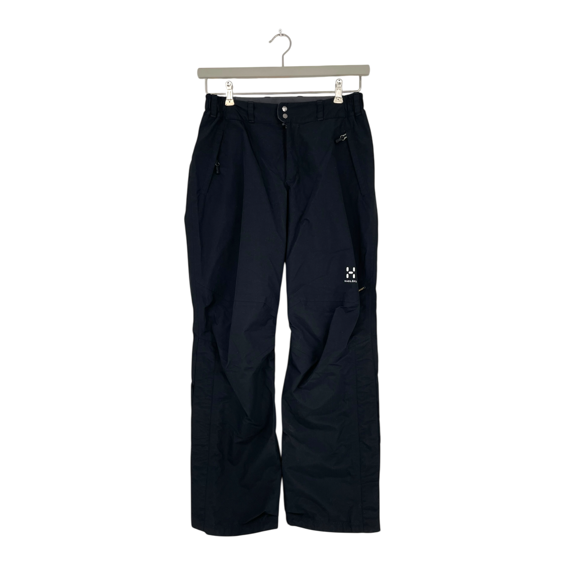 Haglöfs Vandra II Ramble shell pants are windproof and breathable with a zipper and snap closure on the front. The Vandra II pants have an elastic and adjustable waist band and adjustable pant cuffs, three zippered pockets and a loop on the back for ease of hanging.