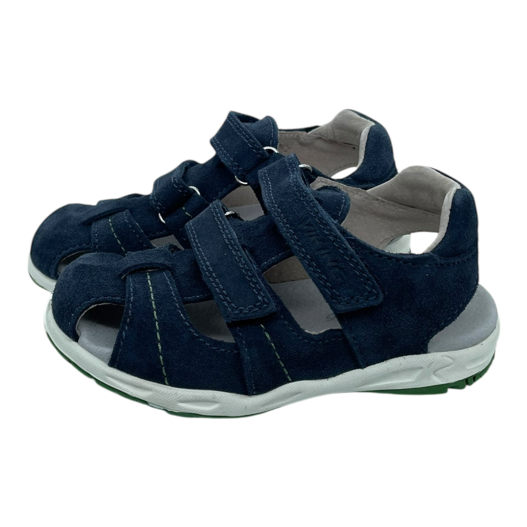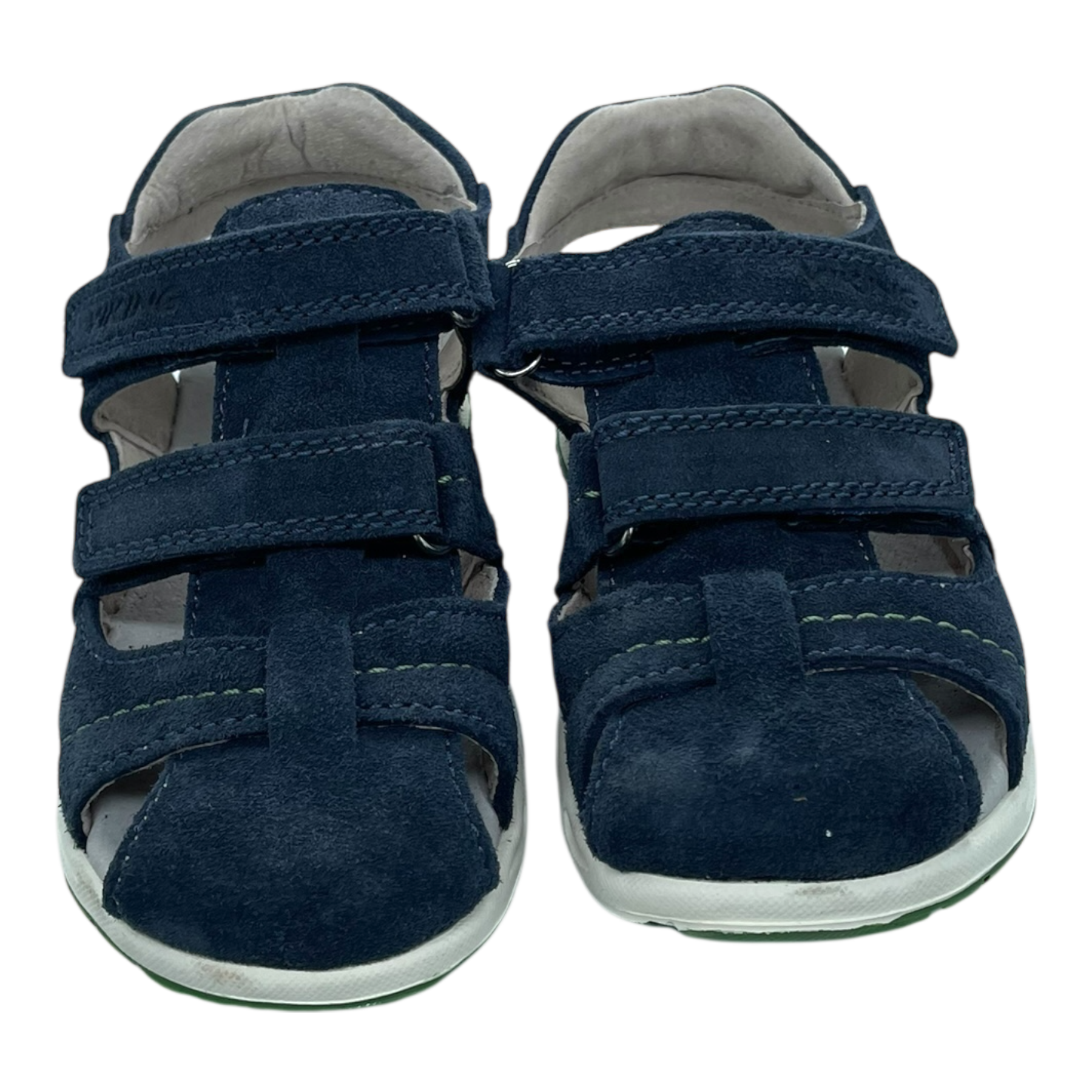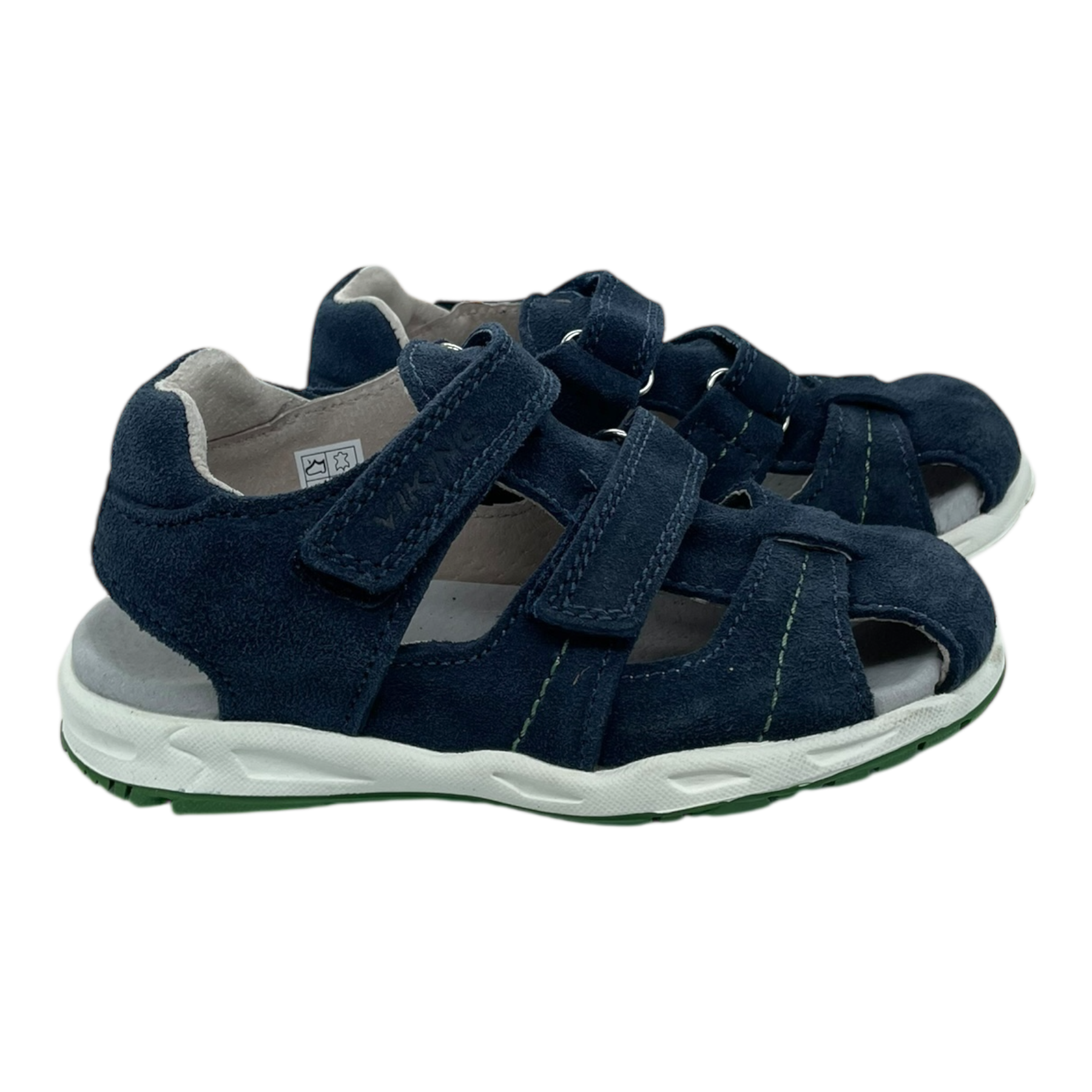 Viking Oscar Navy sandals for kids are made of soft suede and feature two adjustable Velcro straps at the front for a secure and comfortable fit.