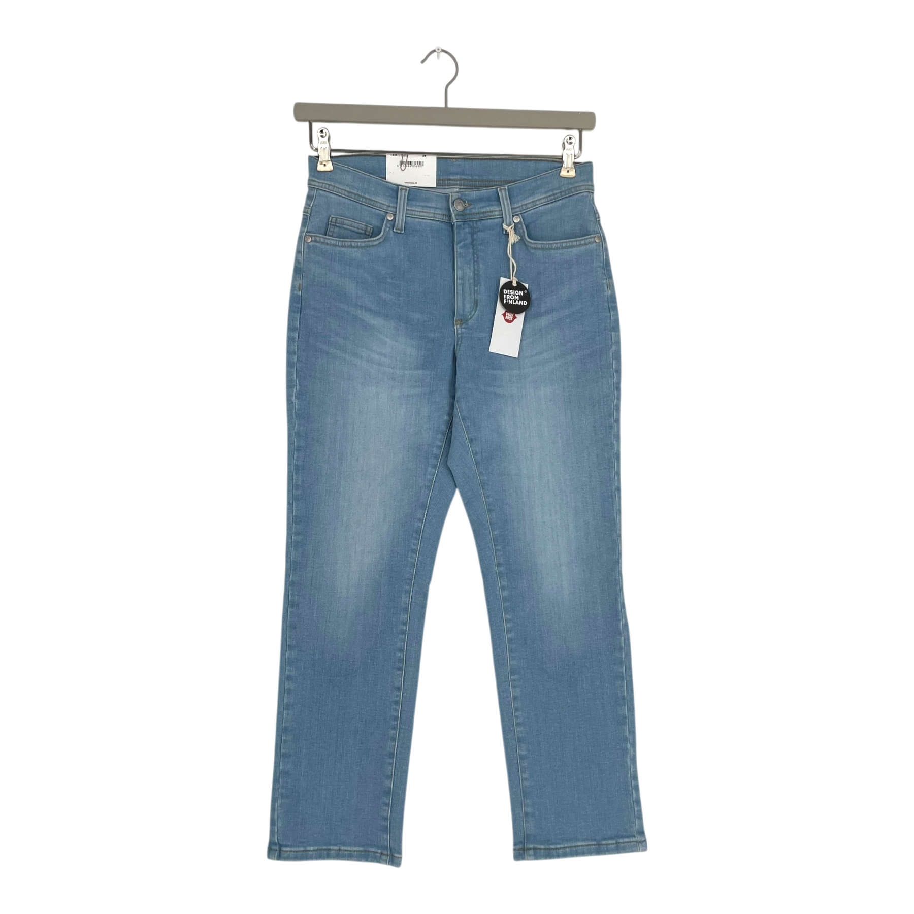 Very Nice Cara Cropped jeans. The curvy fit offers extra room at the hips and thighs while maintaining a smooth, flattering shape through the waist. A high-rise waist enhances the silhouette and provides comfortable support. The slim, straight leg is slightly cropped, perfect for showcasing your favorite shoes and adding a fresh, modern edge to your look. A versatile essential that moves with you, wherever the day leads.