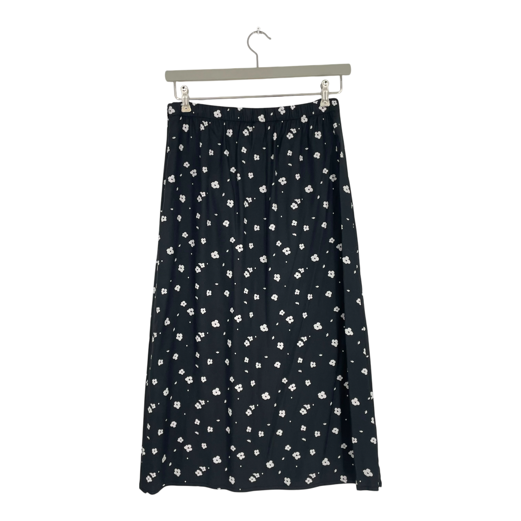 R-Collection skirt in white all-over floral print. The skirt features a midi-length cut, zipper on the side and a stretchy elastic waist band on the back.