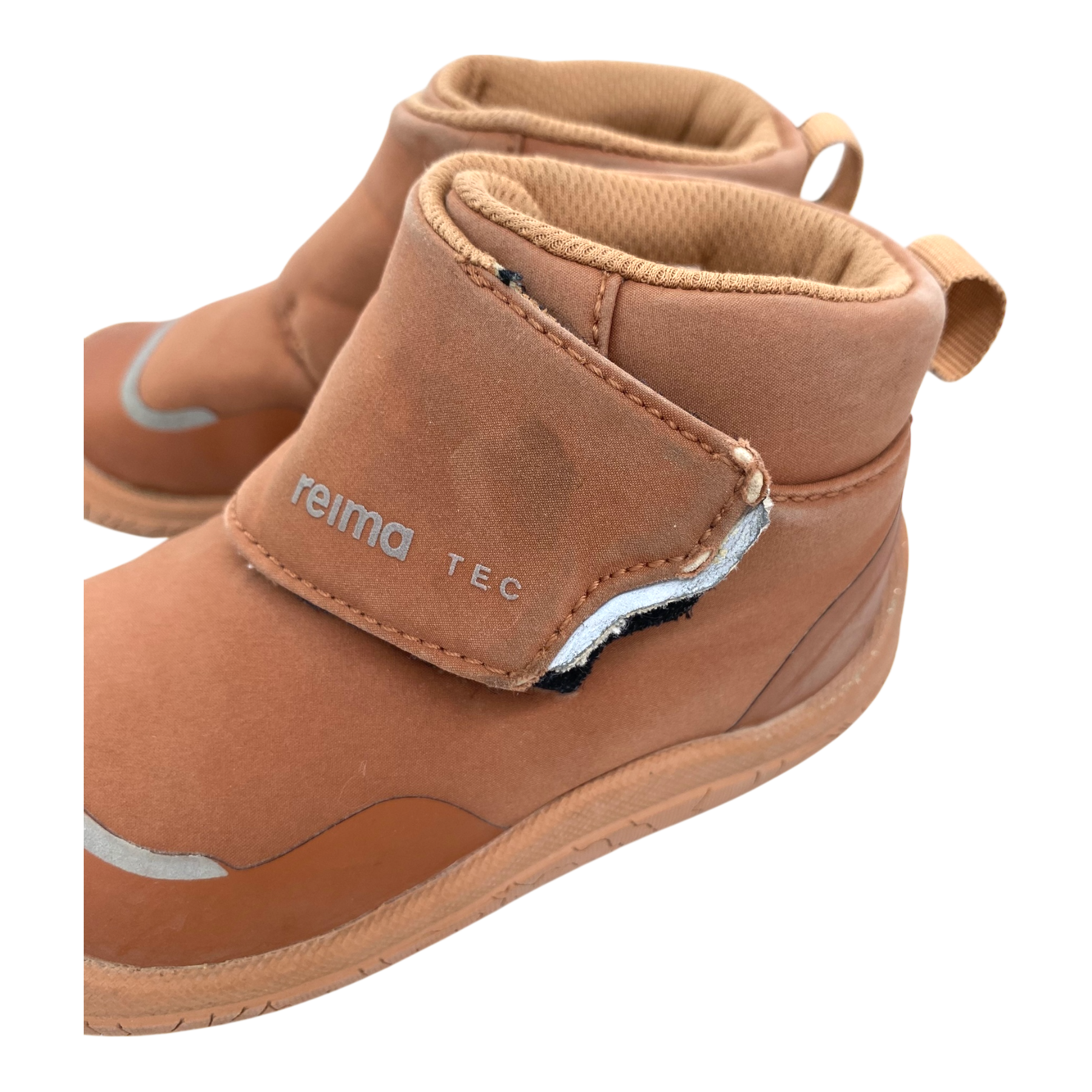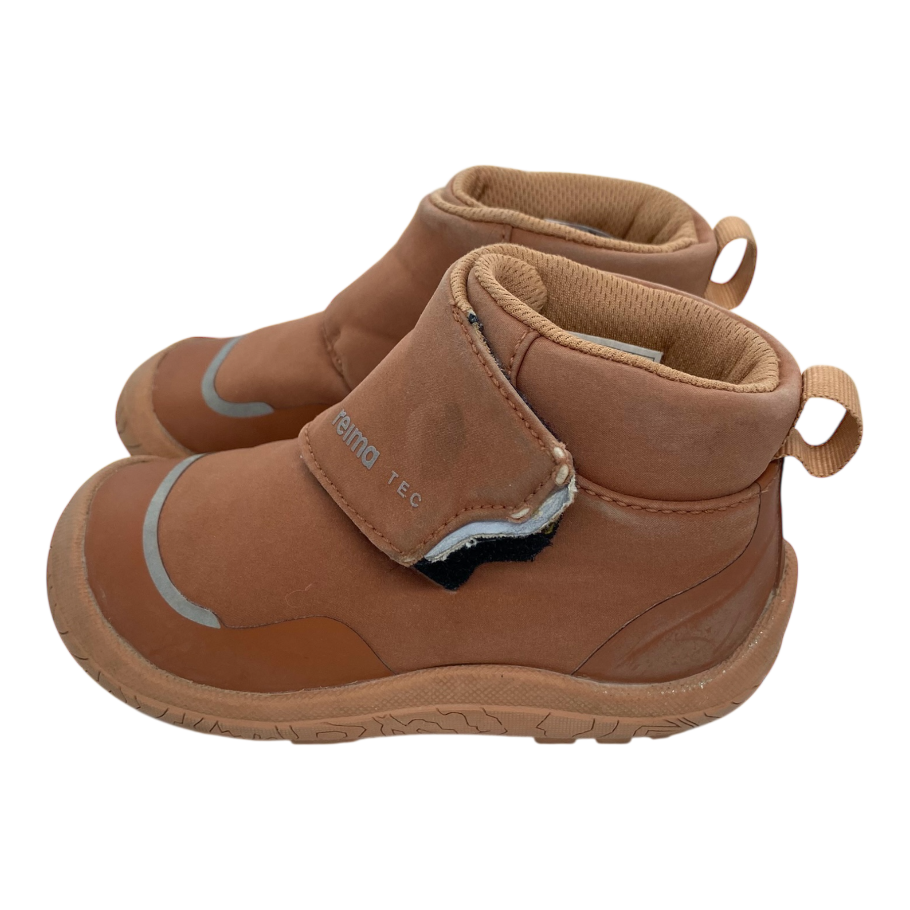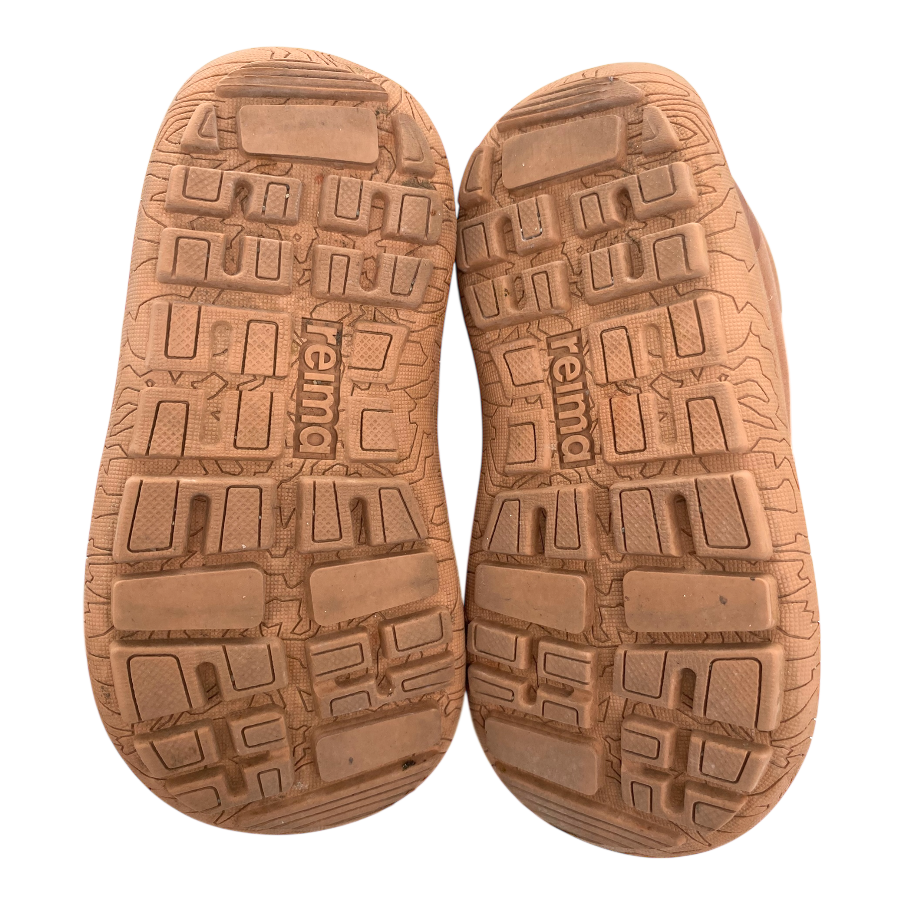 Reima Hyppii barefoot shoes with hook-and-loop fastening. Easy-to-use, comfortable all-weather boots for fall and spring. Shoes are originally waterproof and boots offer a waterproof membrane and comfy lining to keep kids' feet dry.