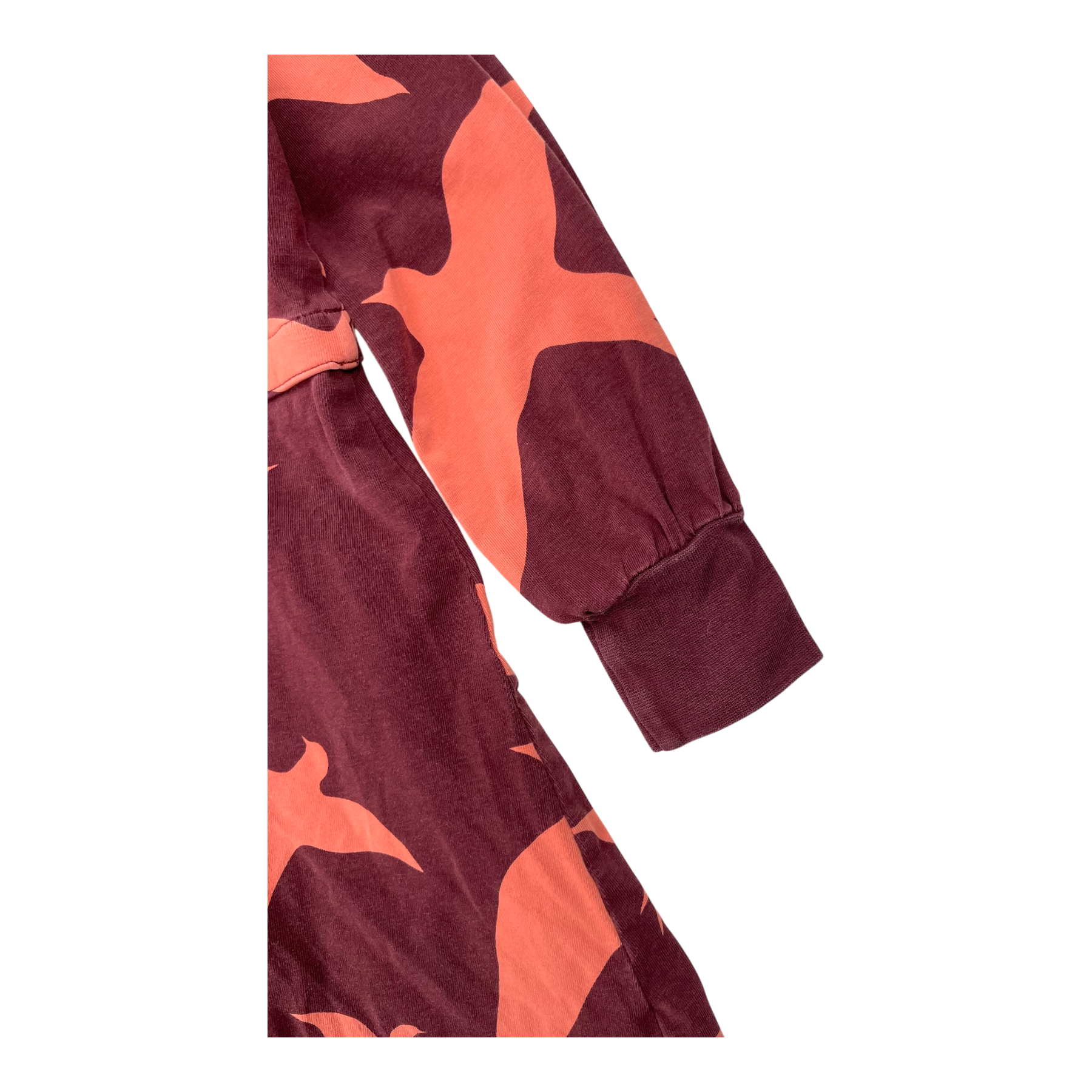 Blaa long sleeve sweat dress in a bird print. There is some light fading on the seams.