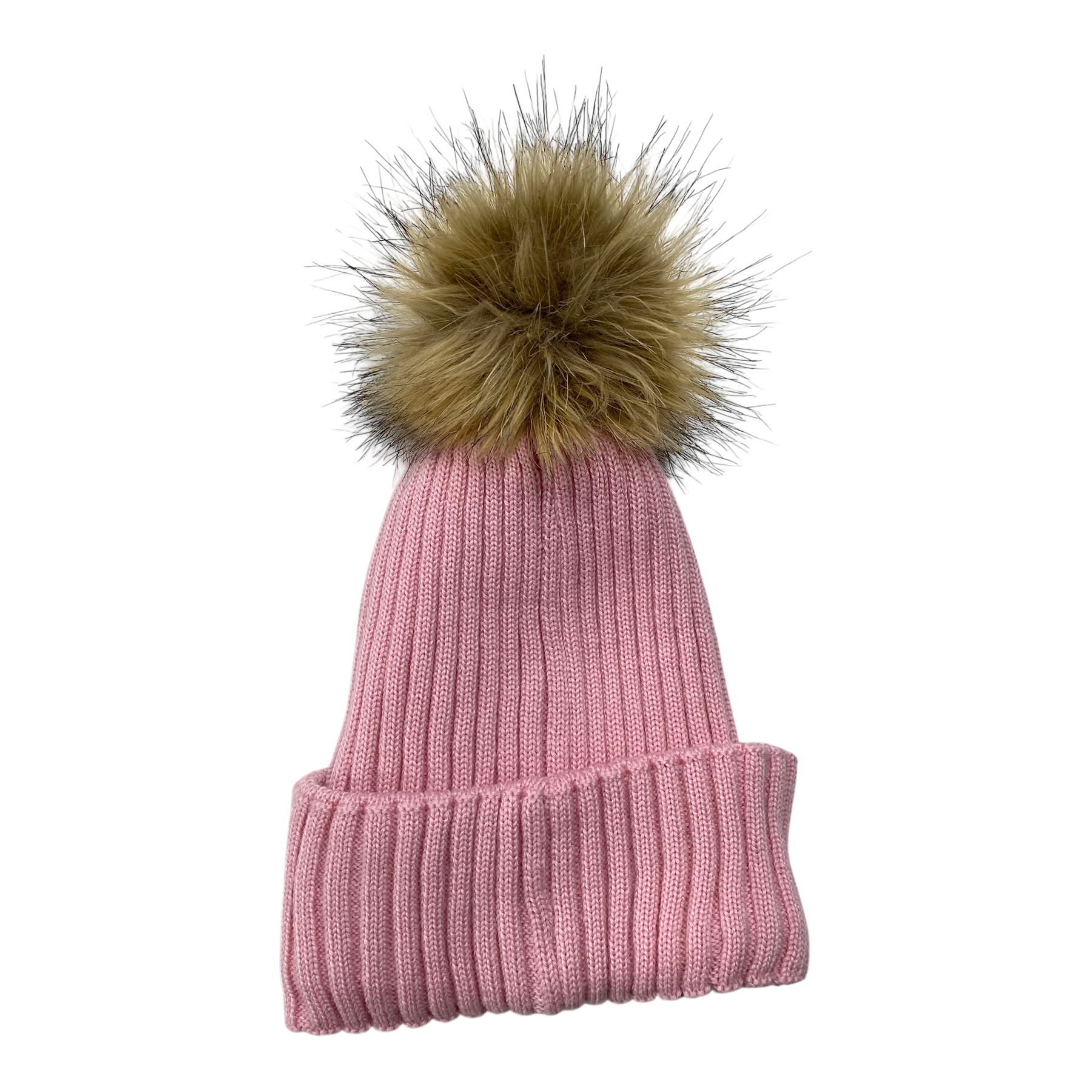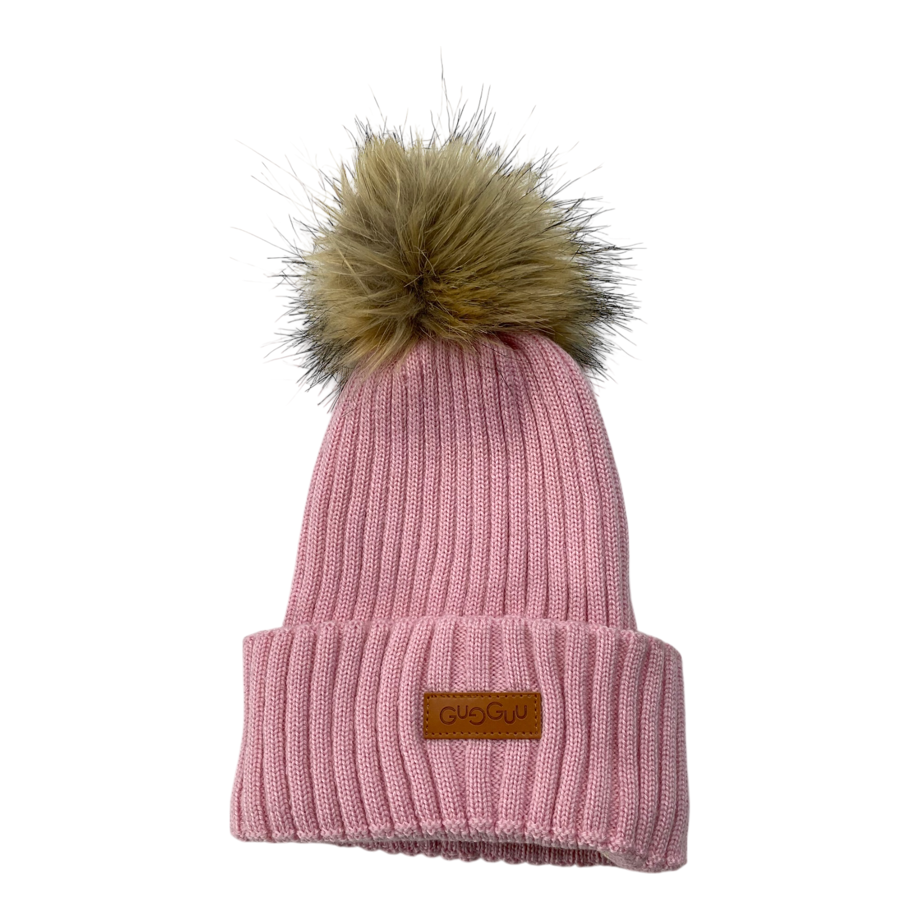 Gugguu merino wool beanie a fake fur pom.