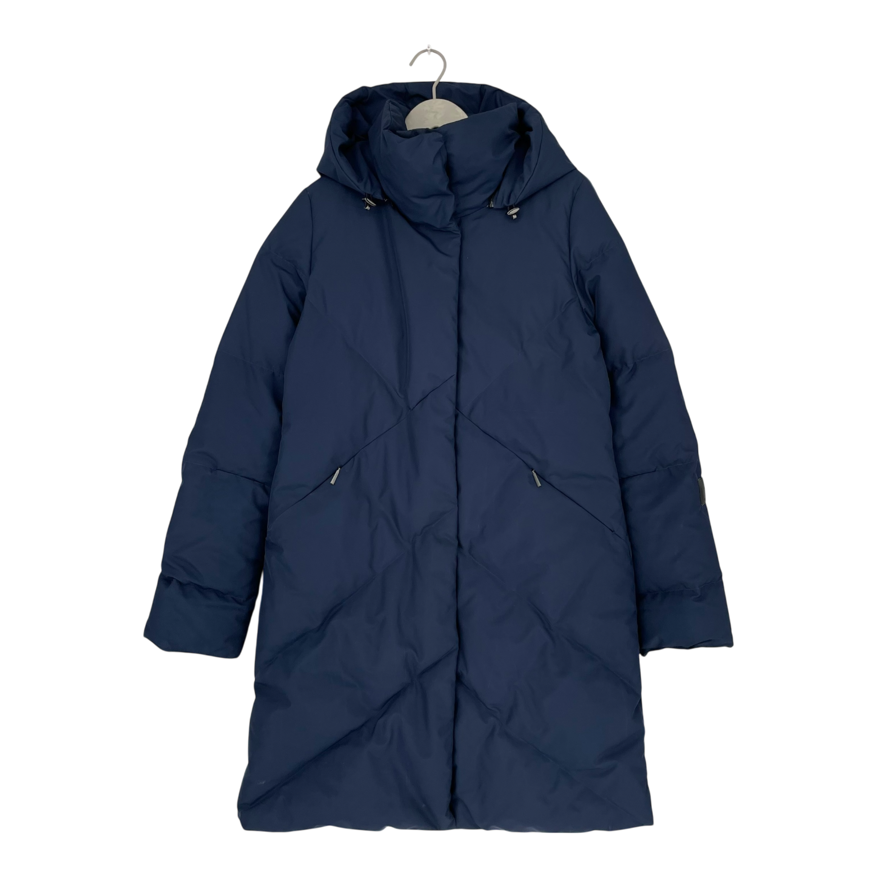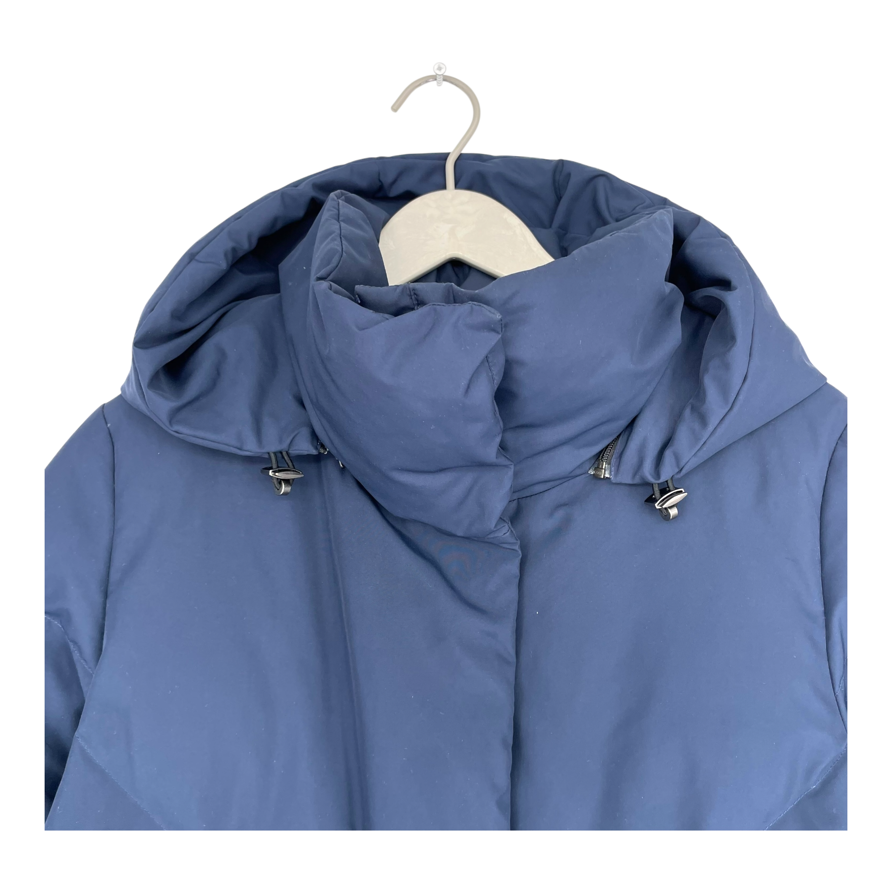 Joutsen Laulu jacket is a down jacket perfect for the colder weathers. There is two pockets with concealed zippers. The snap buttons and the double-slider fastening zipper adds comfortability and daily functionality in the front. There is a large warm hood that that can be adjusted with a drawstring or removed with a zipper. The sleeves can be rolled up for a better fit.