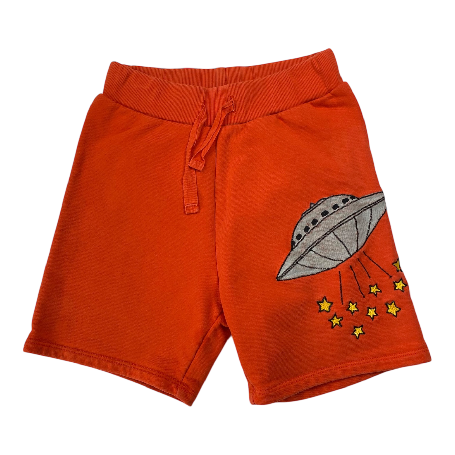 Mini Rodini sweat shorts with drawstrings to adjust the waist in space print.