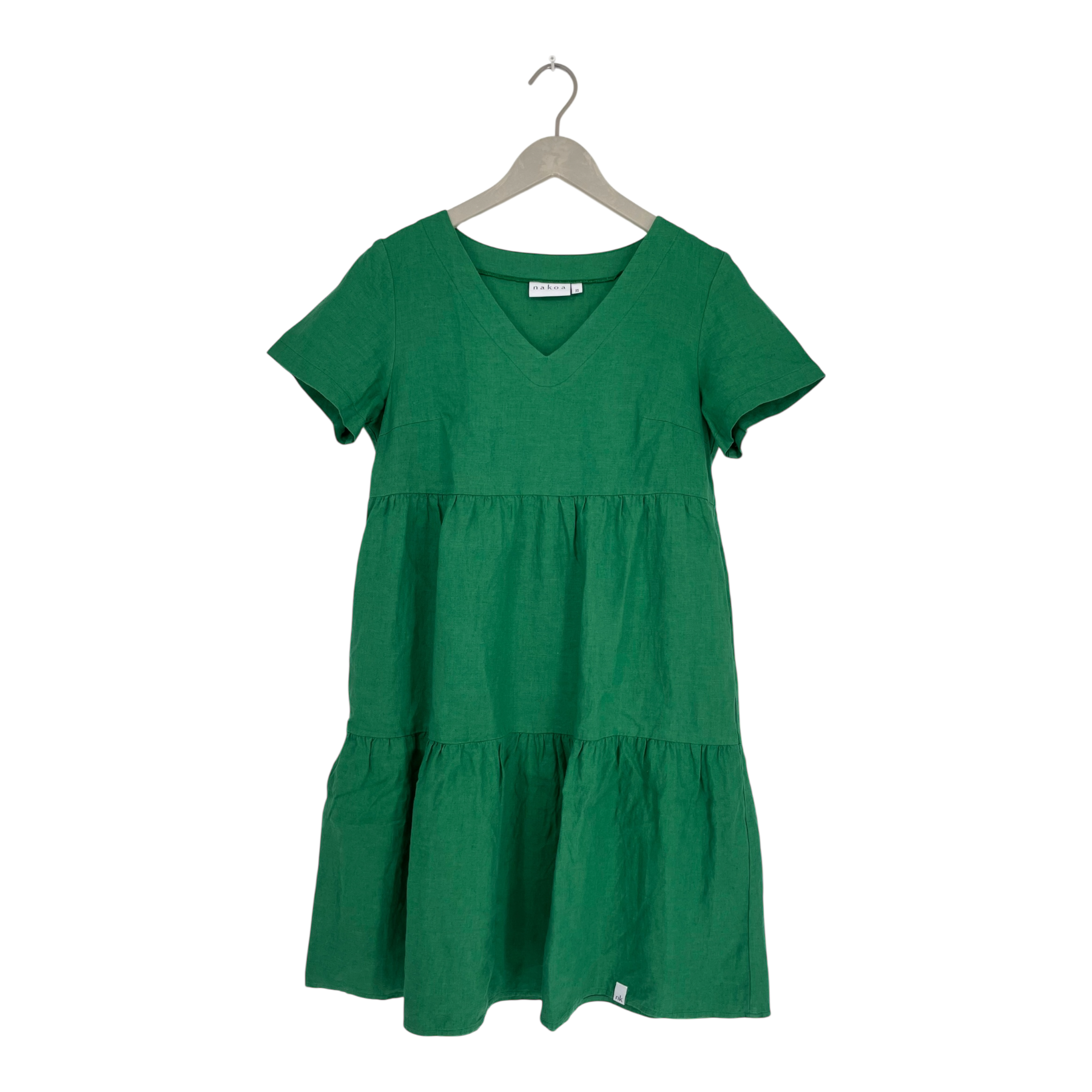 Nakoa layered linen dress with a v-neck, pockets on the sides.