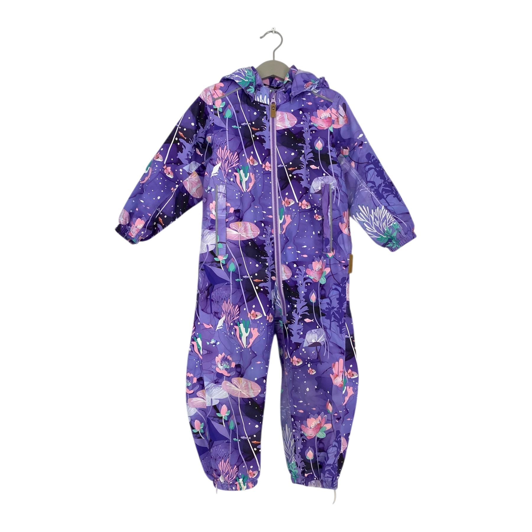 Reima Batans toddlers' spring jumpsuit is made from a water-repellent material with sealed seams for a waterproof finish. The functional material is also windproof and dirt-repellent. The smooth polyester lining makes dressing easier and won't affect movement when little ones are having fun outdoors. The hood is detachable for safety and the elasticated foot loops, which can be removed, keep the leg hems in place. This breathable toddlers' all-in-one comes with lots of thoughtful details, like an adjustable waist, a zipped pocket and reflective accents.