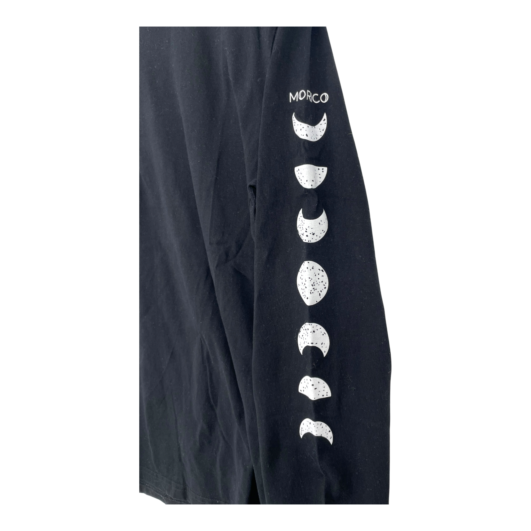 Morico women's long sleeved shirt with a moon print on the sleeve. Some minor fading on the collar seams, as shown in the last picture.