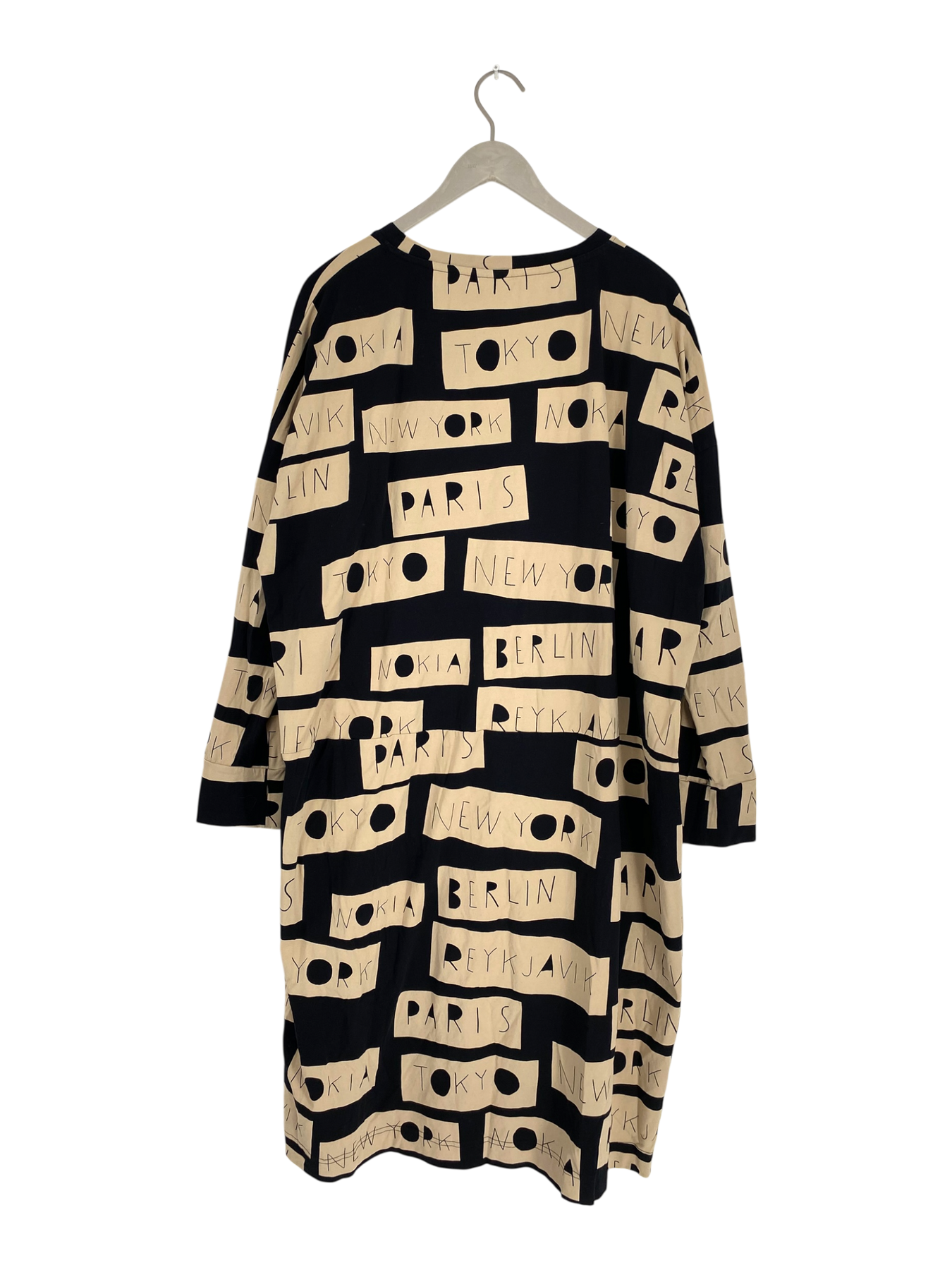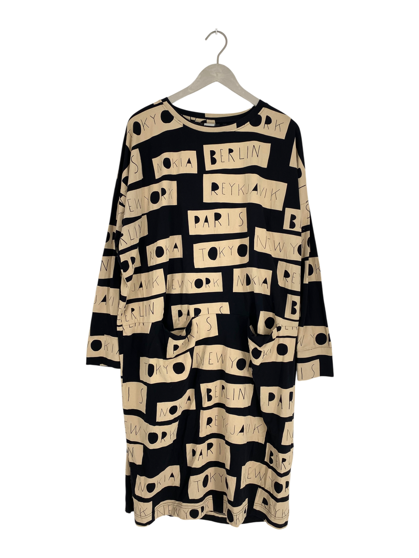 Papu women's long tunic dress with two front pockets in No distance -print.