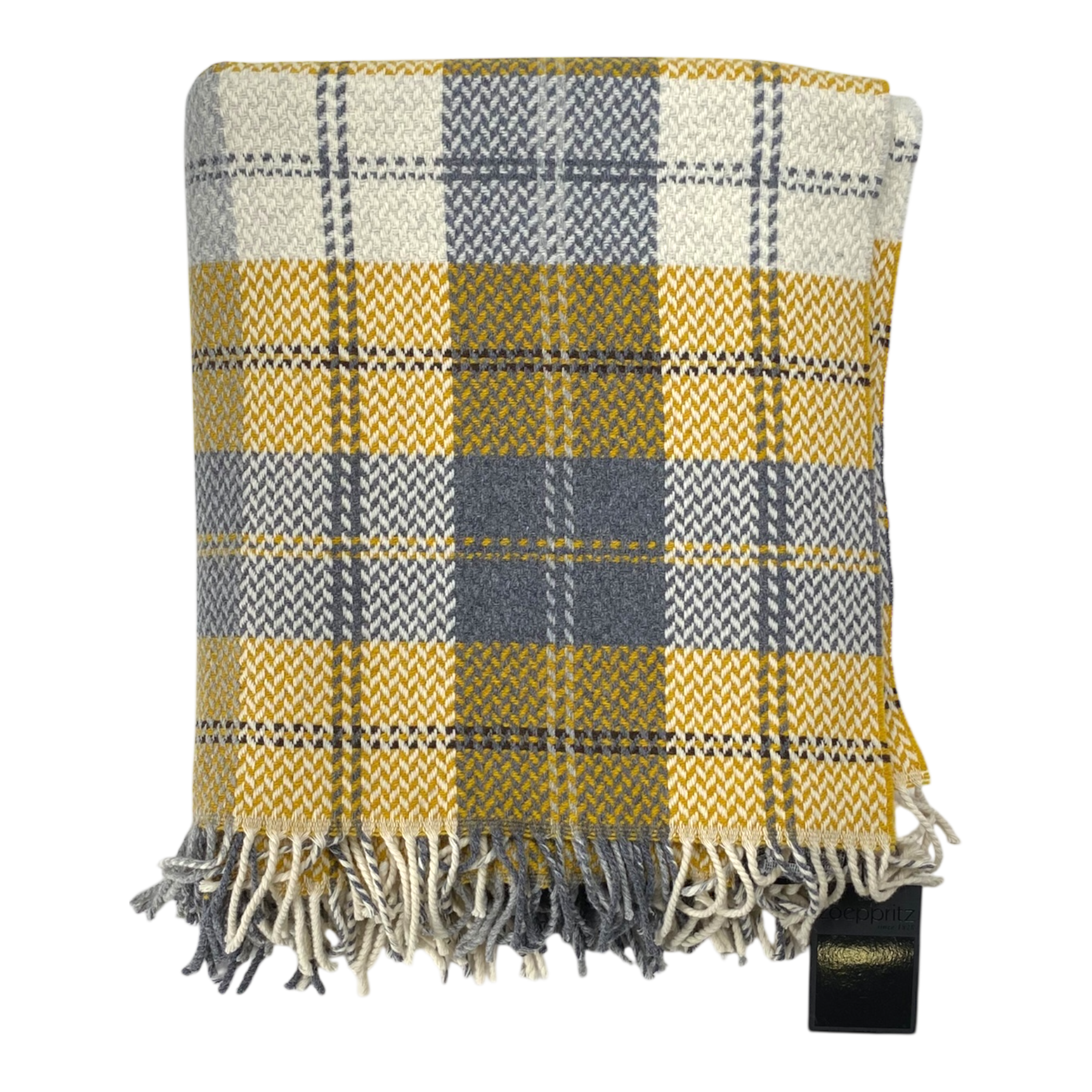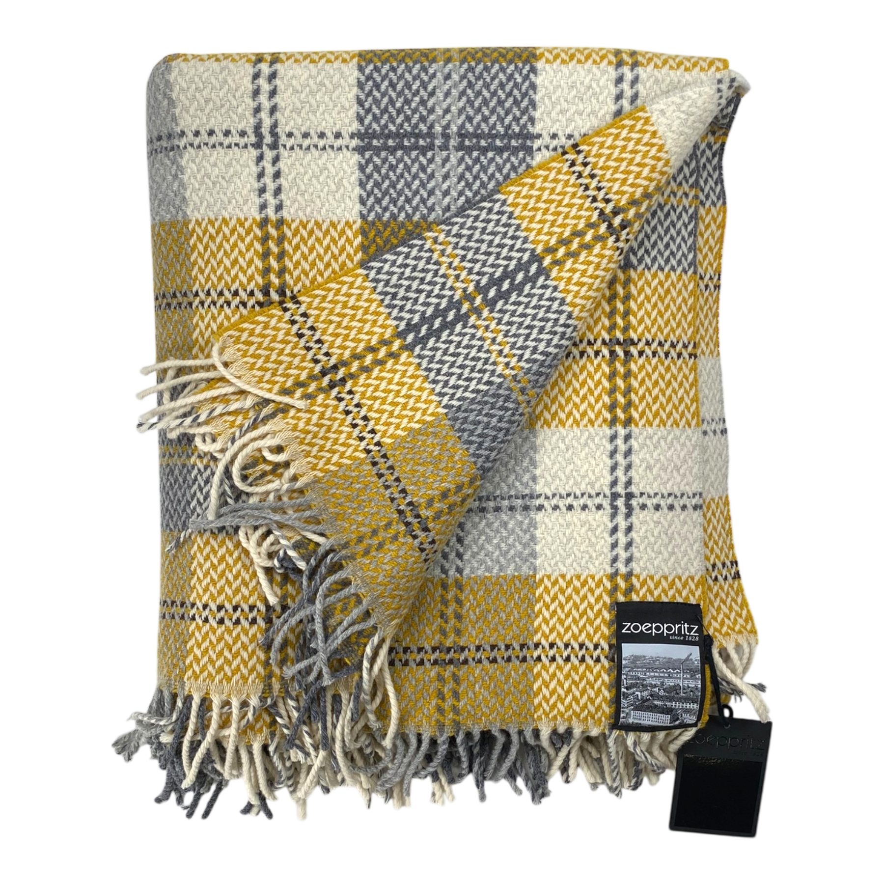 Zoeppritz knitted Herring Check wool blanket with fringes.