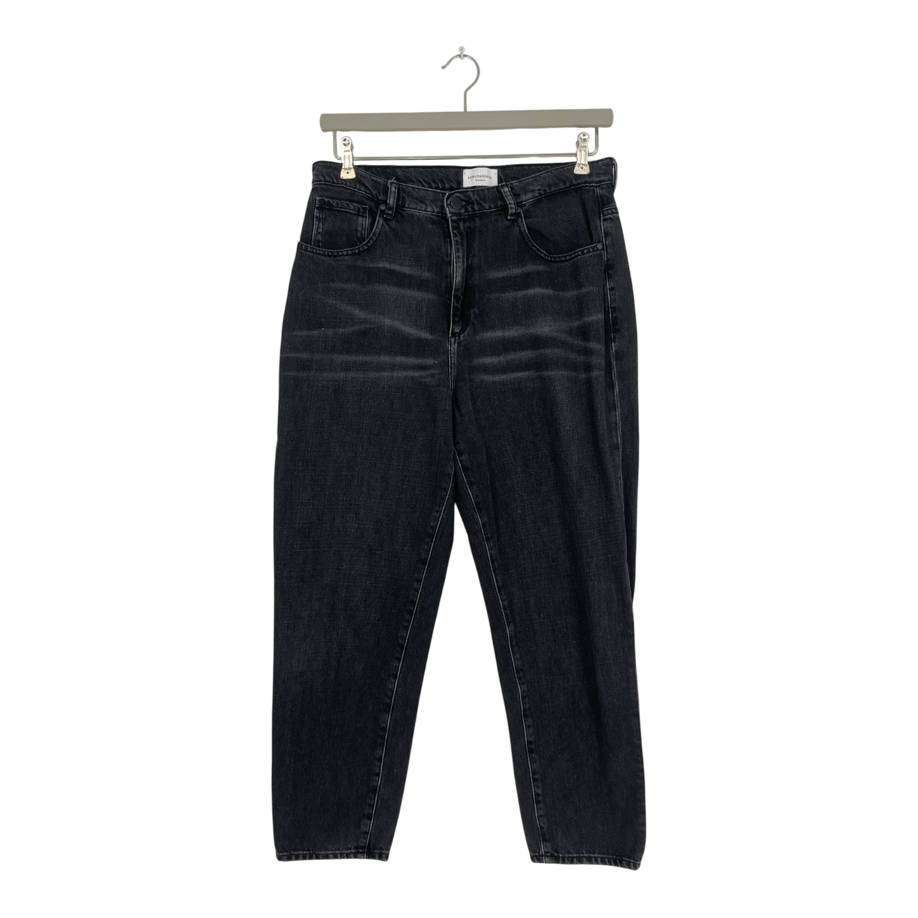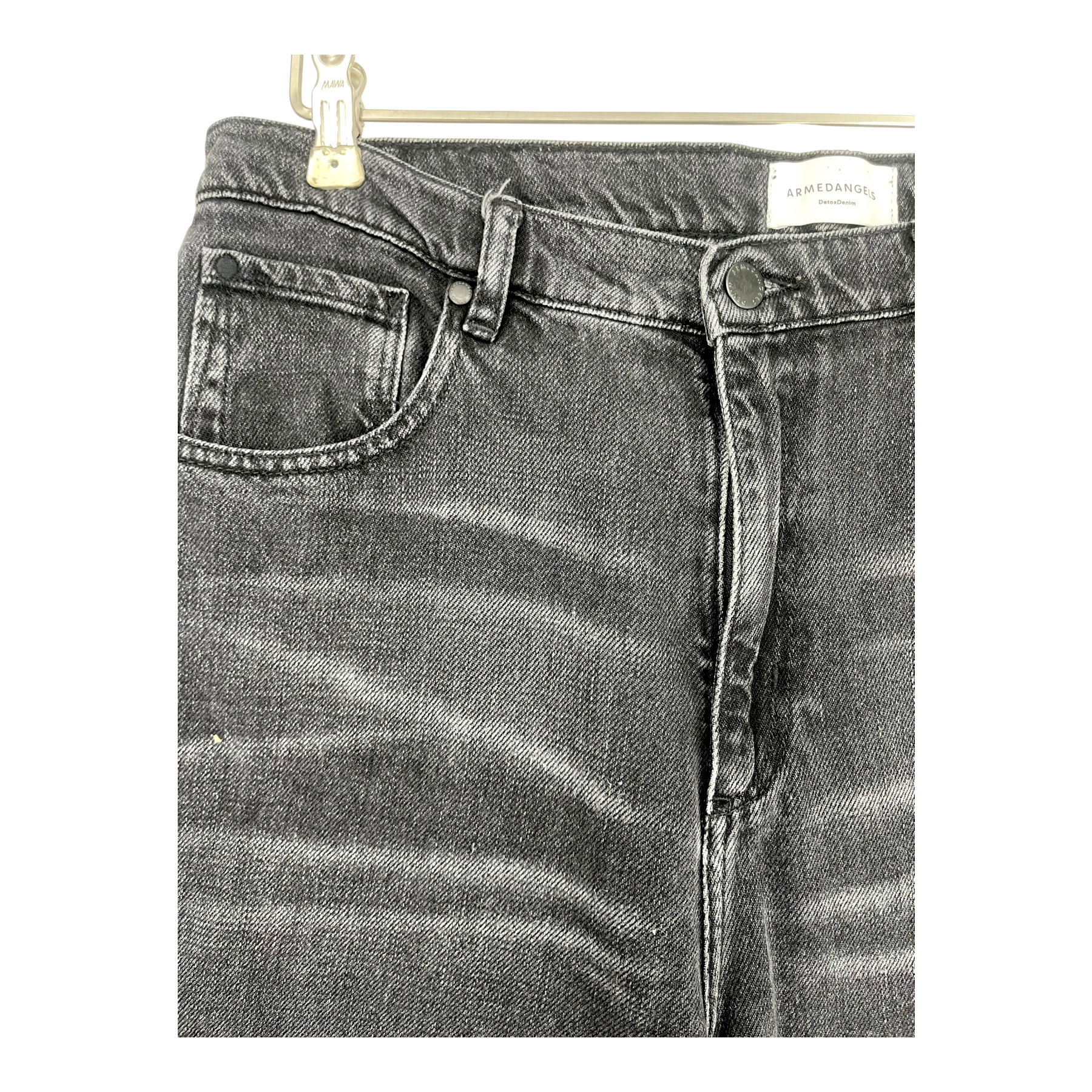 Armedangels mom jeans with distressed denim details. The fabric of the item shows some natural signs of wear as well.