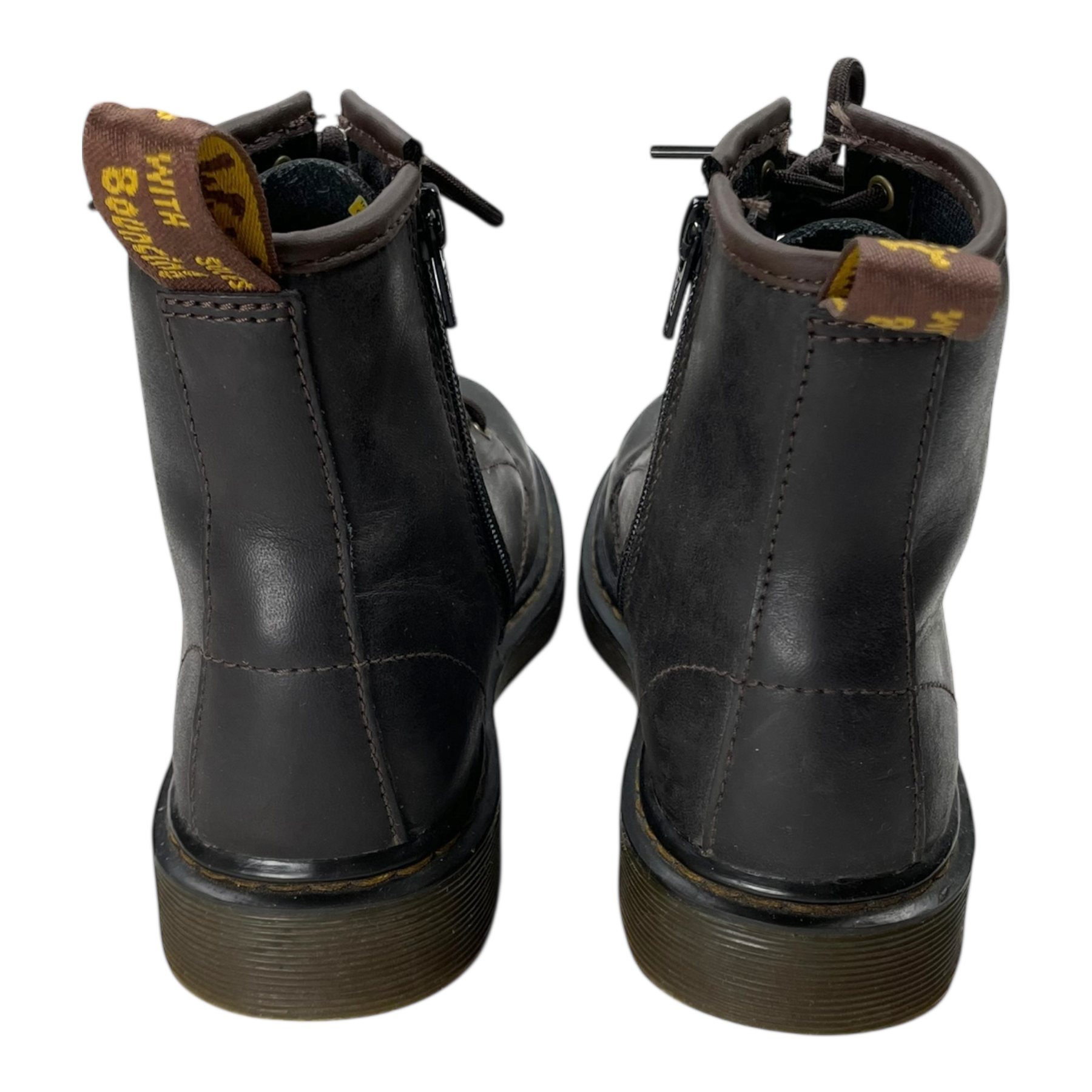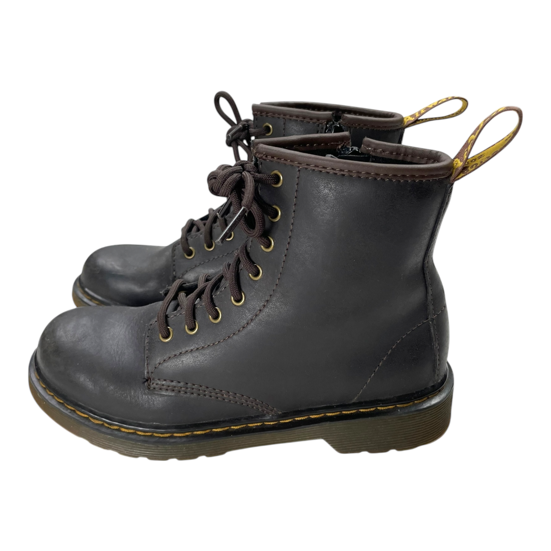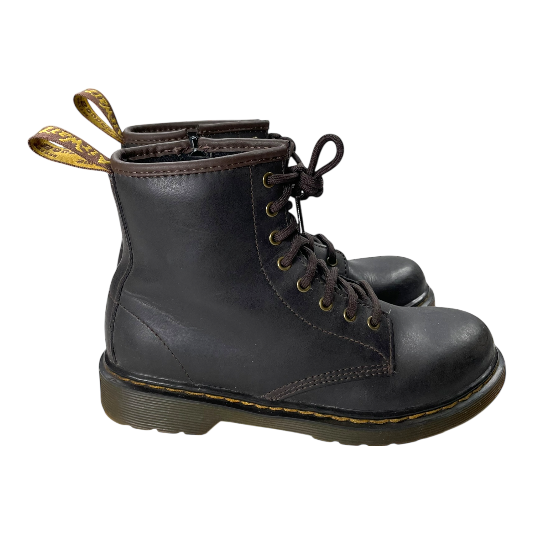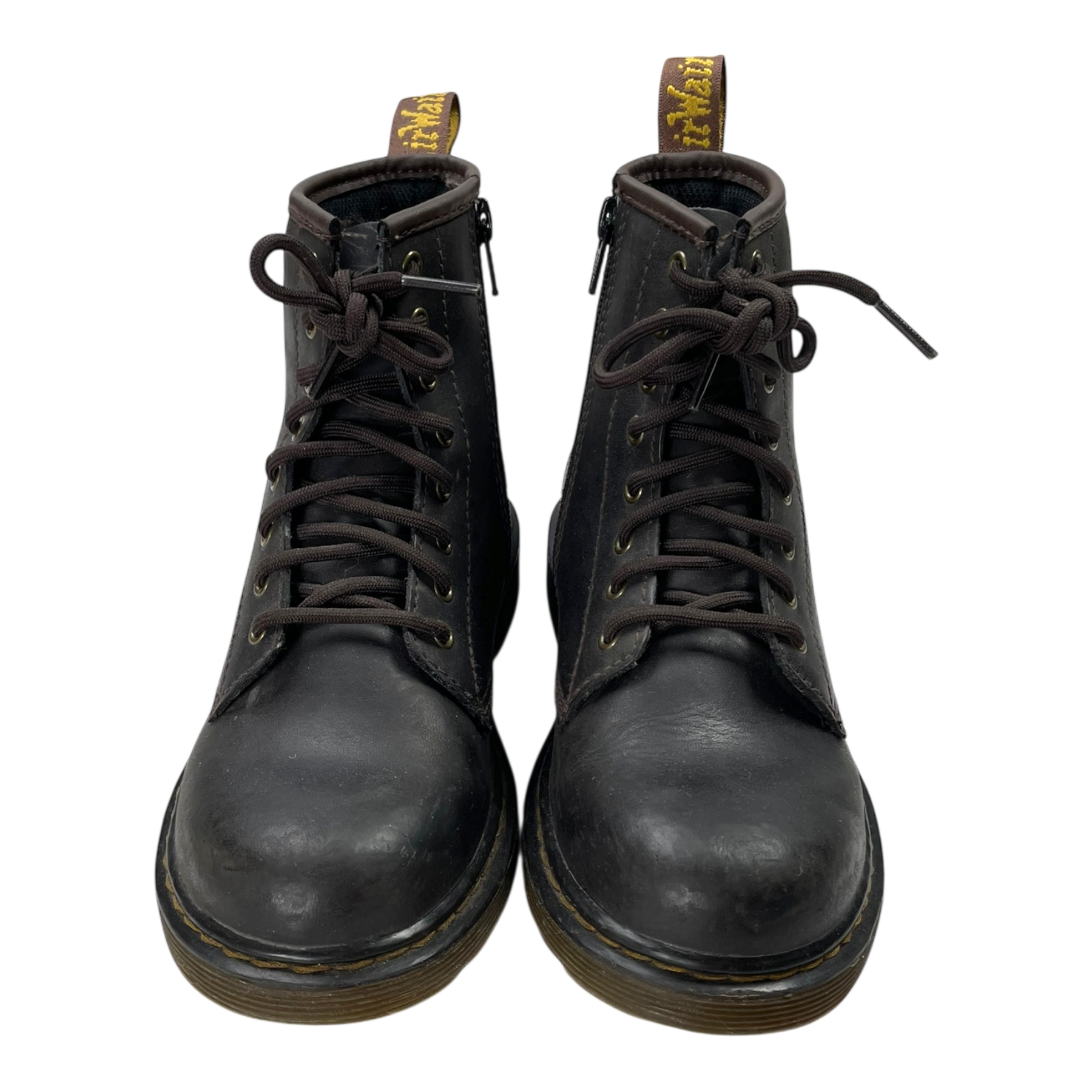 Mini version of Dr. Martens original 1460 boots. Zipper on the side for easy dressing. Comes with extra laces. Toecap area has some scratches and marks.