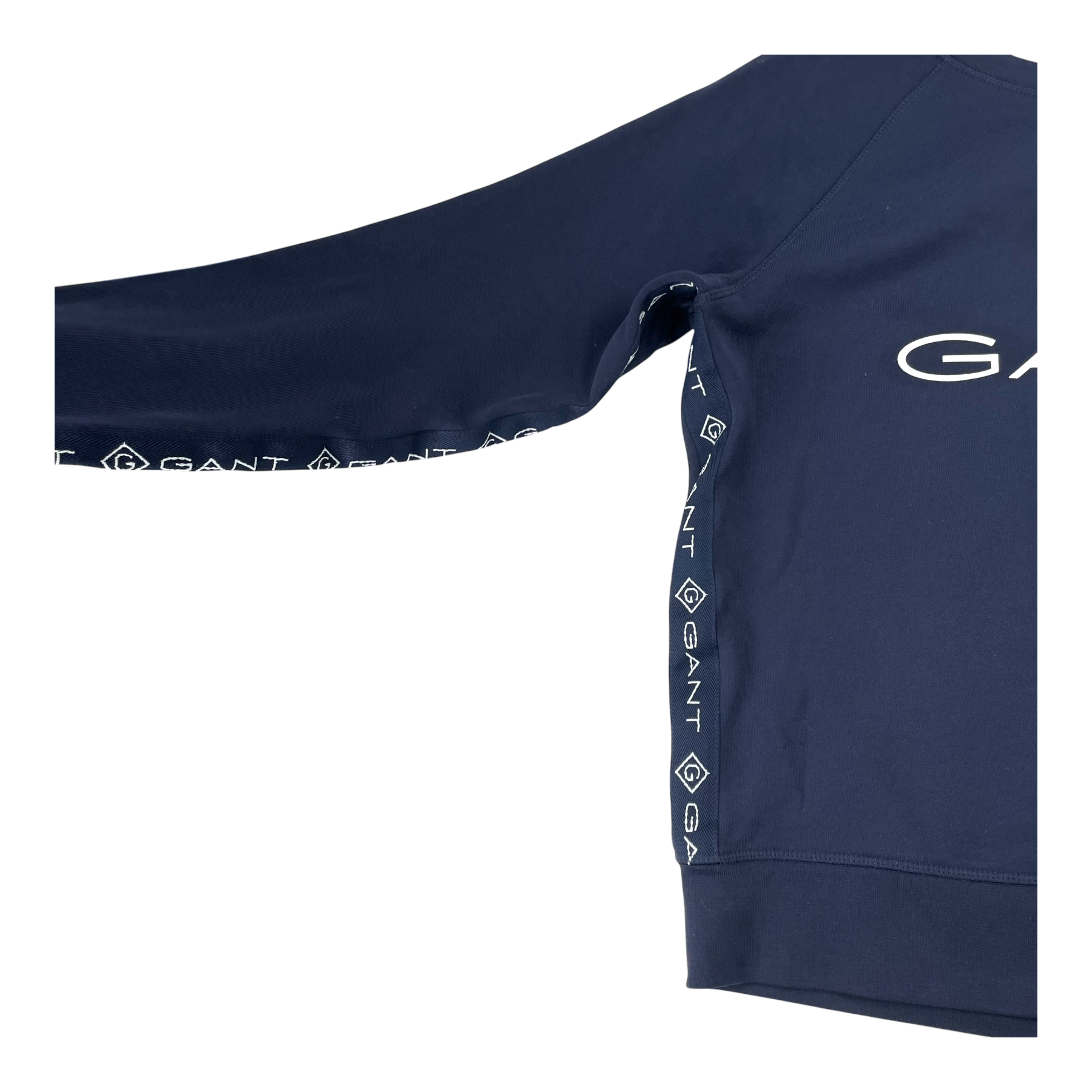 Gant sweatshirt with a logo in the front and the logo going down the sides and sleeves.