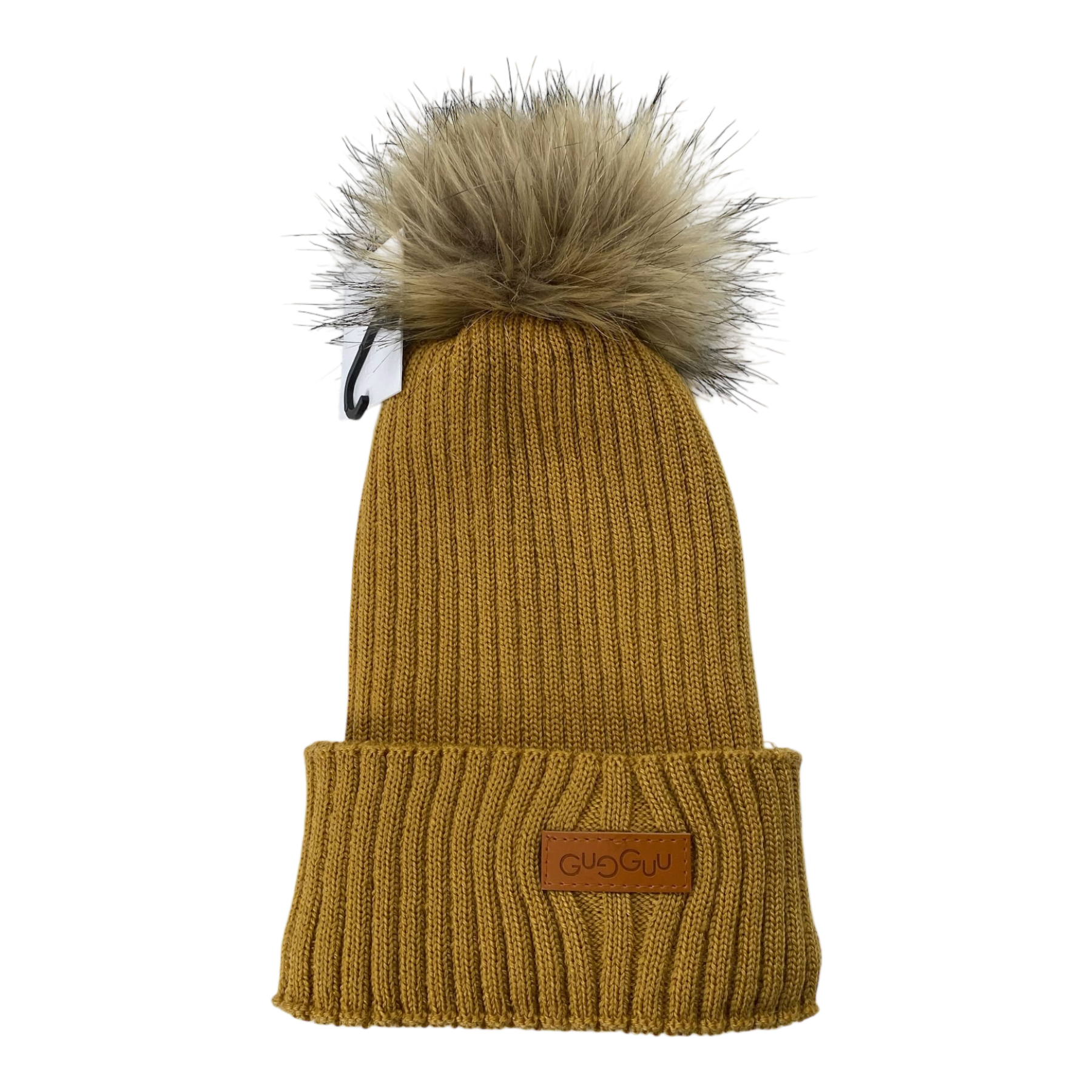 Gugguu merino wool beanie a fake fur pom.