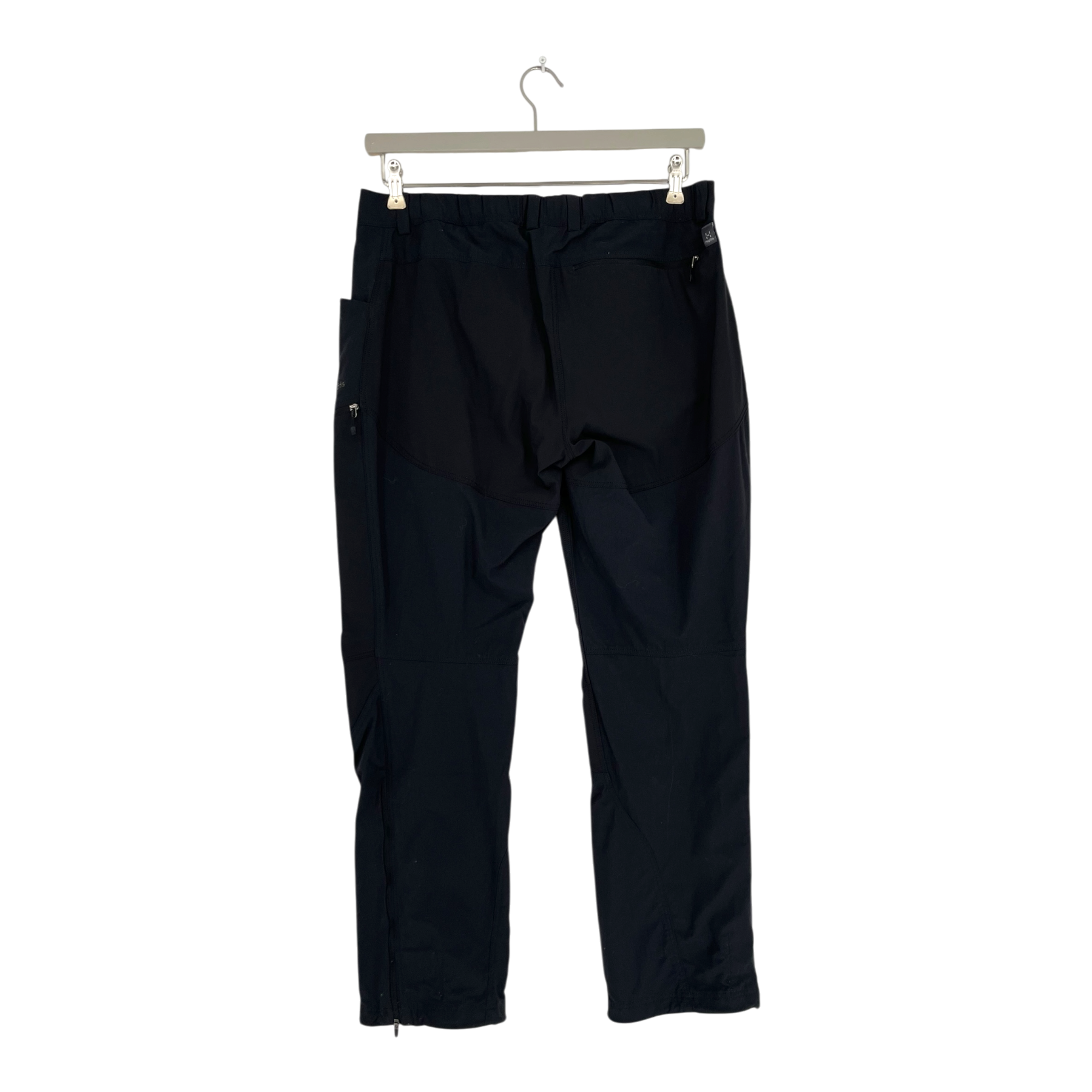 Haglöfs technical hiking pants with articulated knees and stretch inserts for enhanced mobility. Features multiple zip pockets for storage and adjustable leg cuffs. Designed for active outdoor use with a flexible fit that moves with you during hiking and climbing activities.