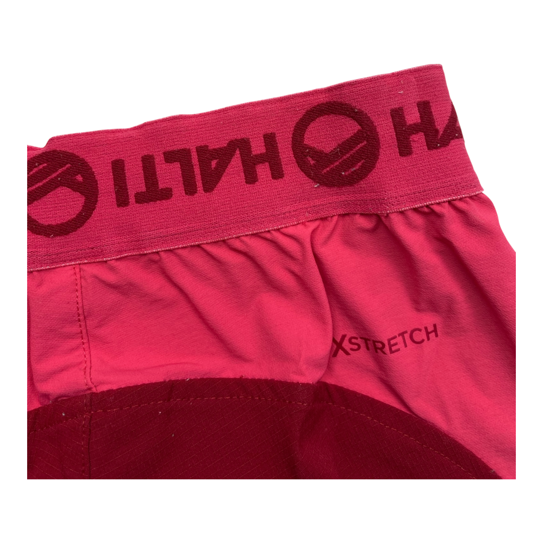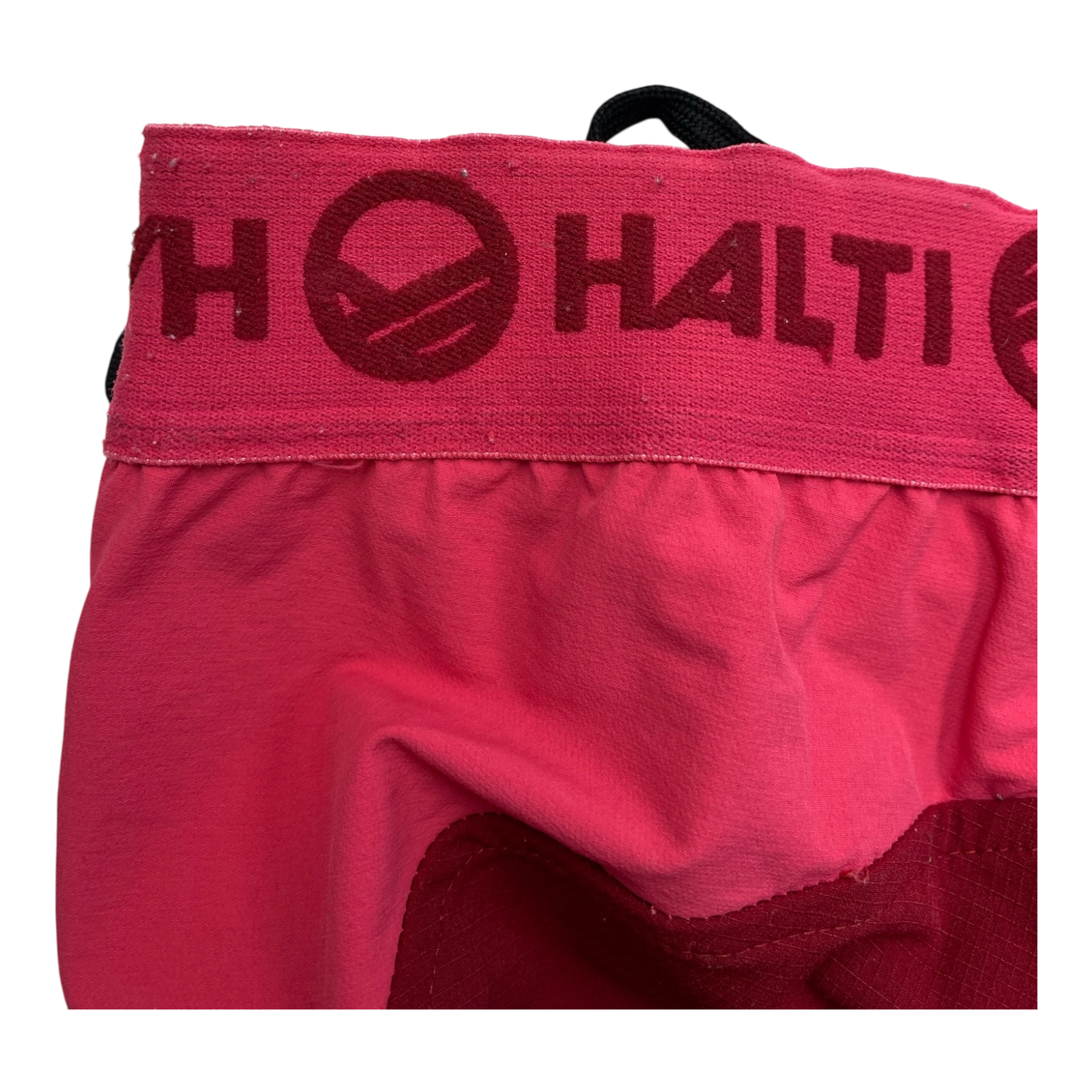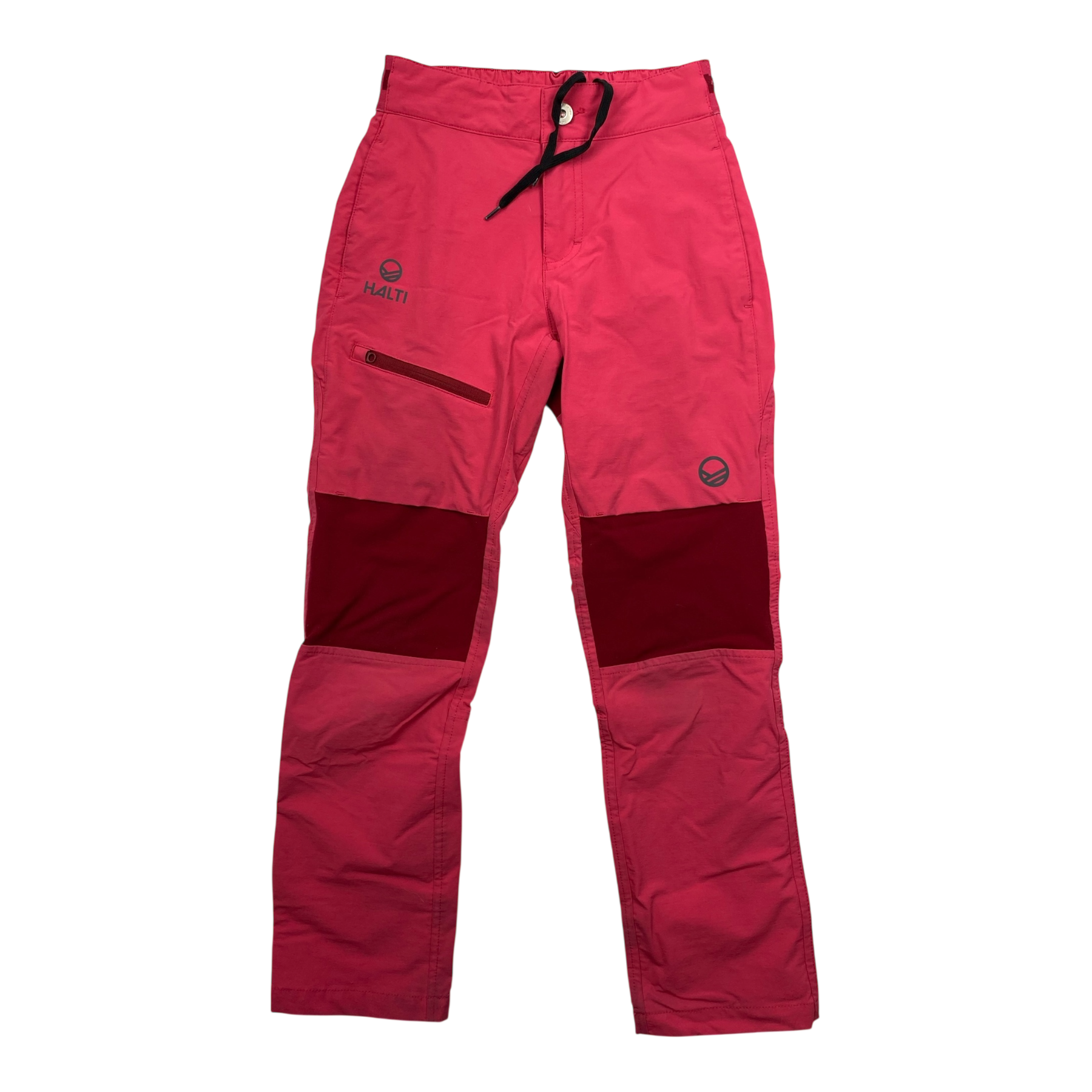 Halti Pallas junior midseason pants with pockets in the front and on the sides. The pants have some wear on the fabric as well as pilling.