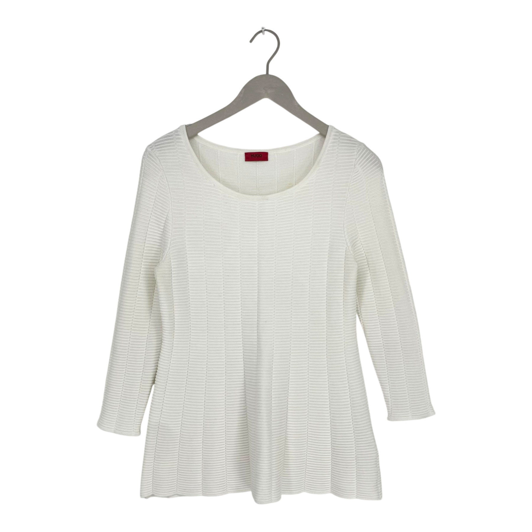 Hugo Boss women's long sleeve shirt with structured striped fabric with a peplum style hem.