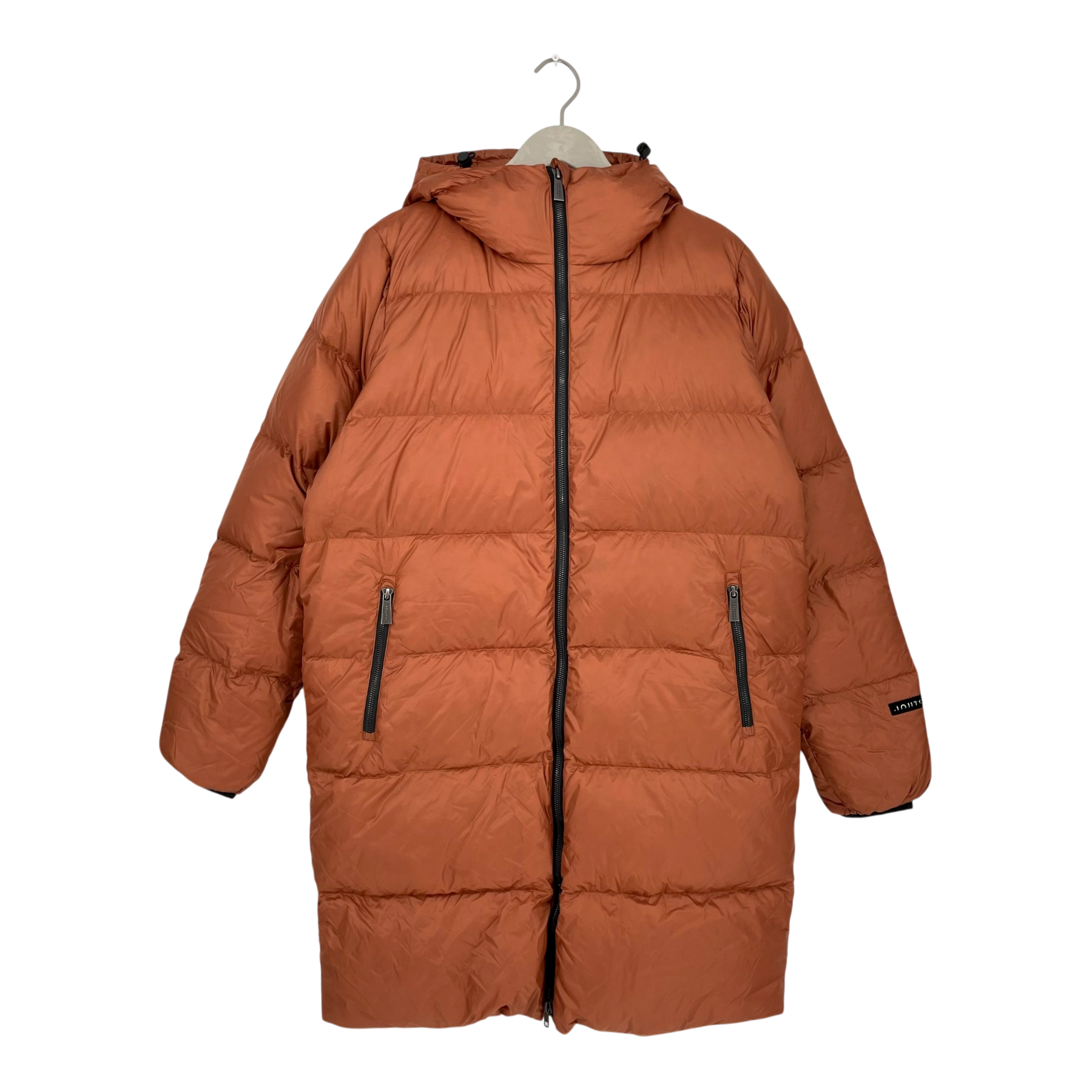 Joutsen Silvia jacket is a down jacket perfect for the colder weathers. There a large horizontal stitching and two front pockets with zippers. The double-slider fastening zipper adds comfortability and daily functionality in the front. There is a large warm adjustable hood that can be worn up or down according to weather and the sleeves can be rolled up for a better fit.