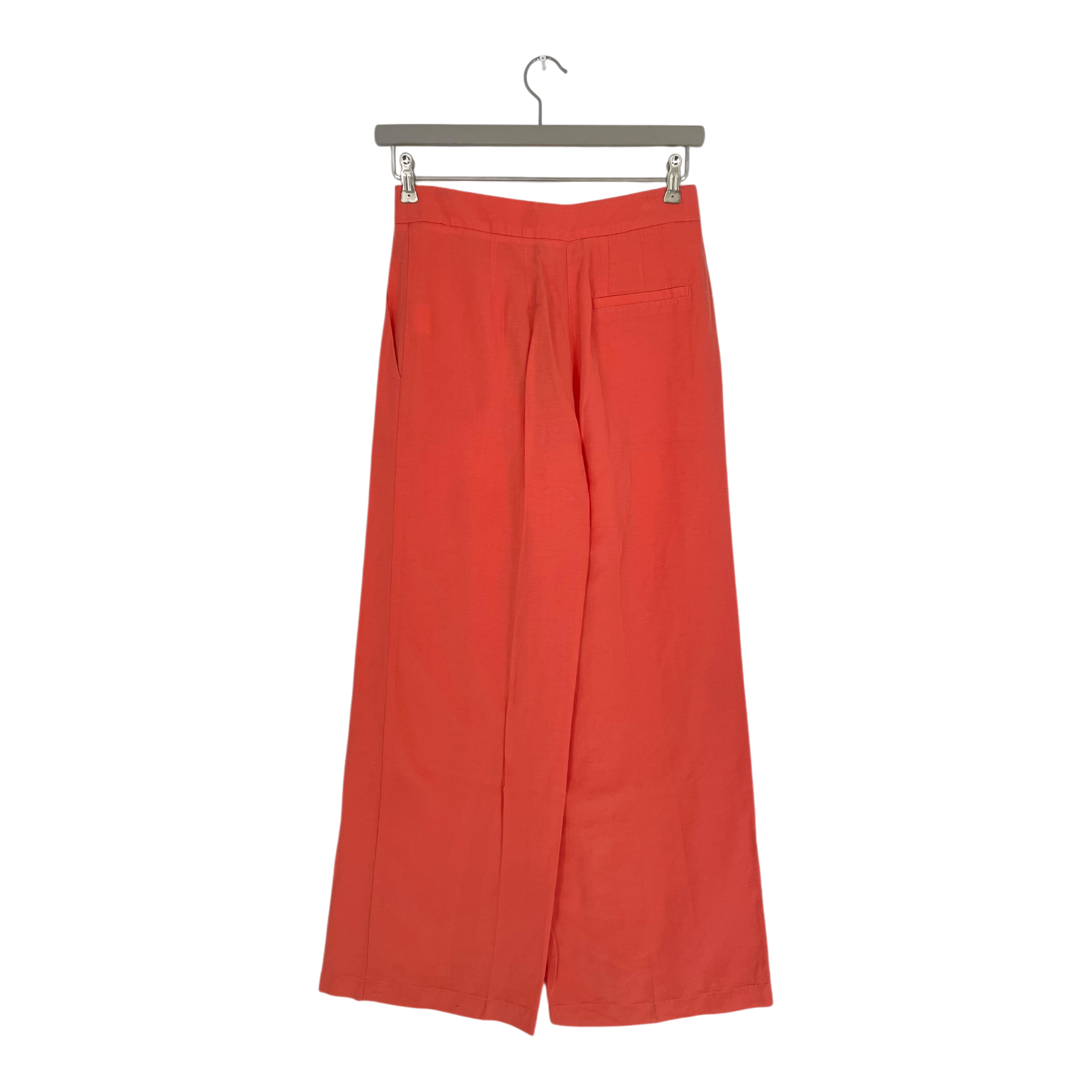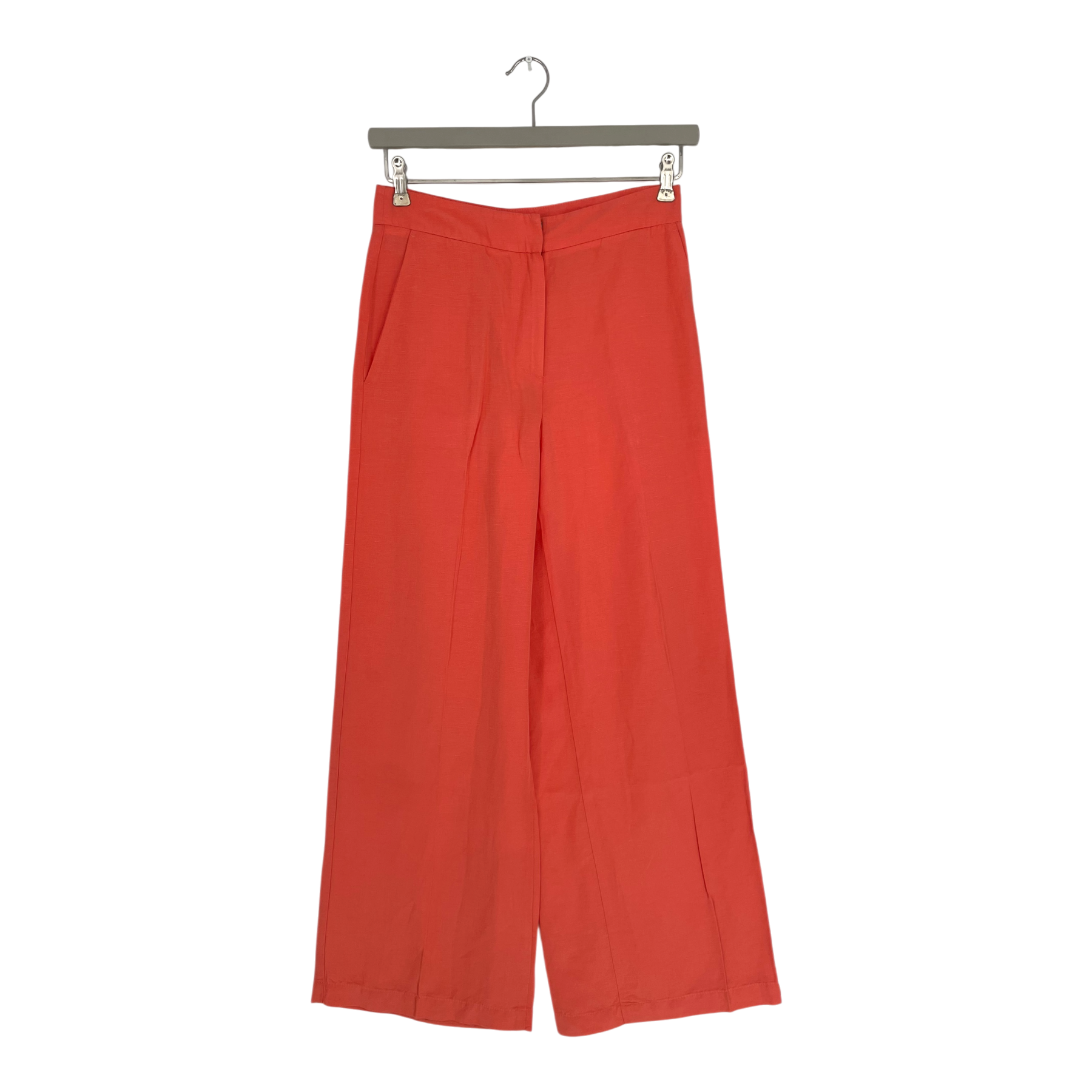 Lanius wide leg pants in coral with zip closure and side pockets. High-waisted design with flowing silhouette.