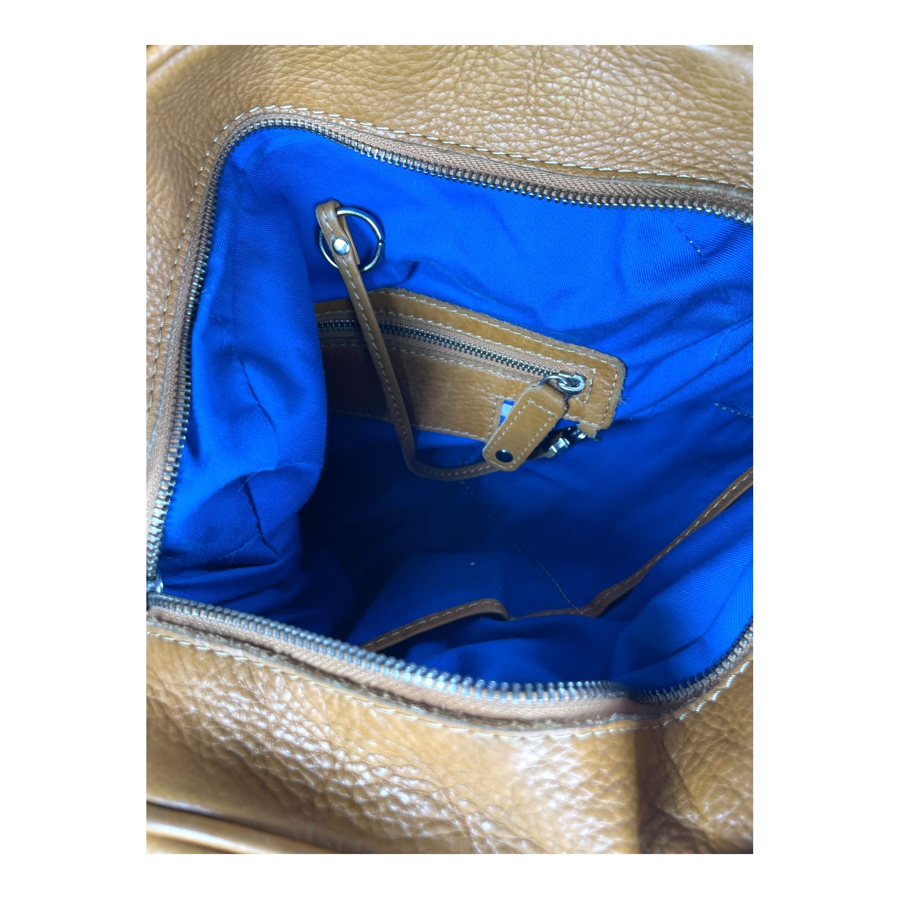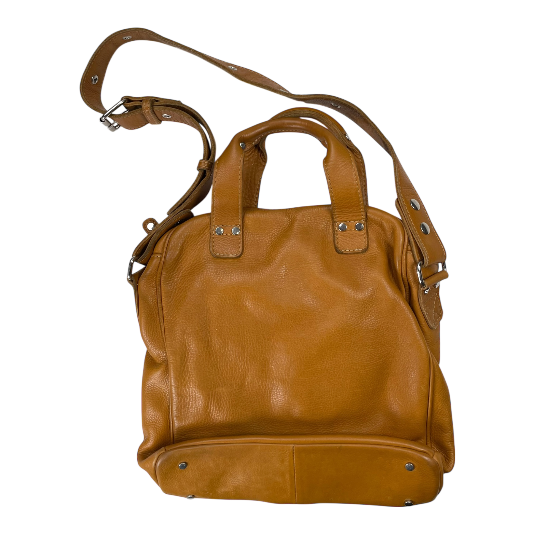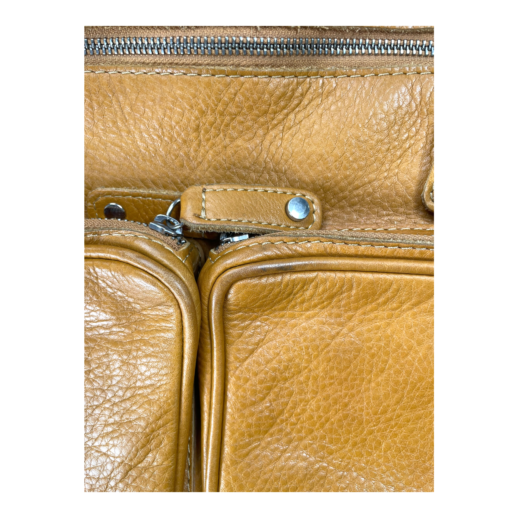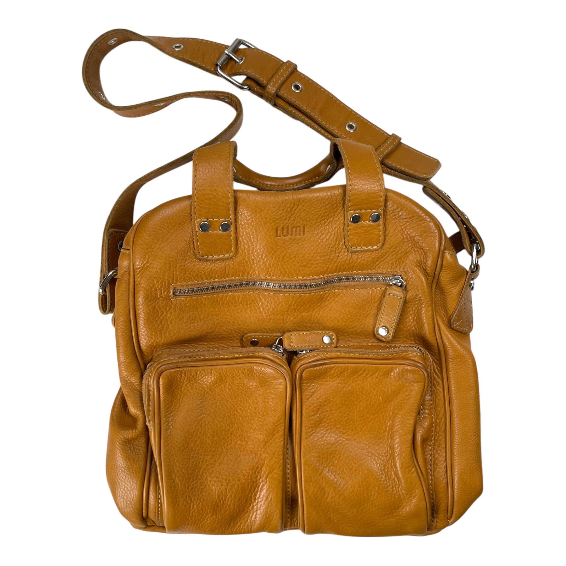 Lumi Supermarket bag in mini size made out of full grain, vegetable tanned, cow leather with cotton twill lining. Silver colored hardware and zipper closure. The item has clear signs of use.