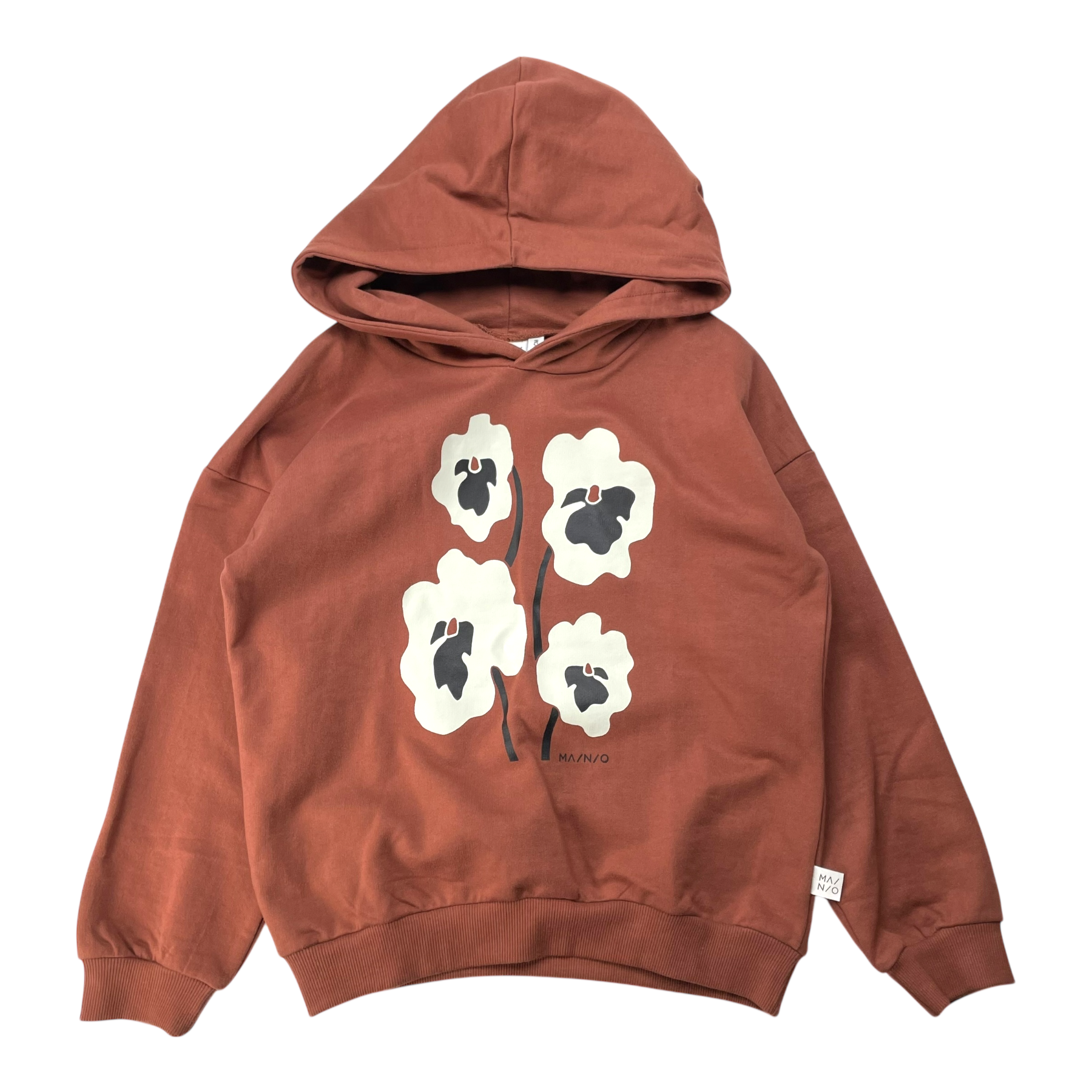Mainio sweatshirt with a hood and a flower print on the front.