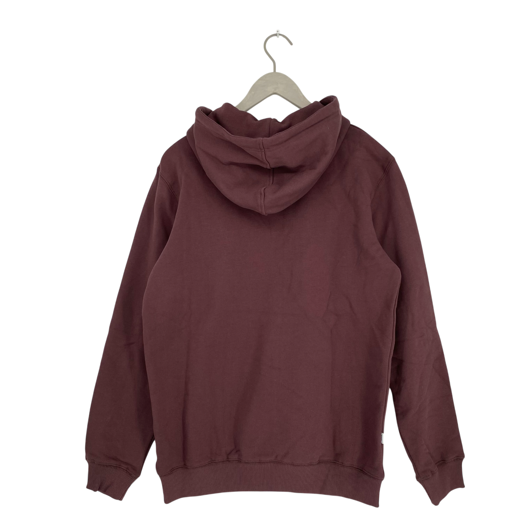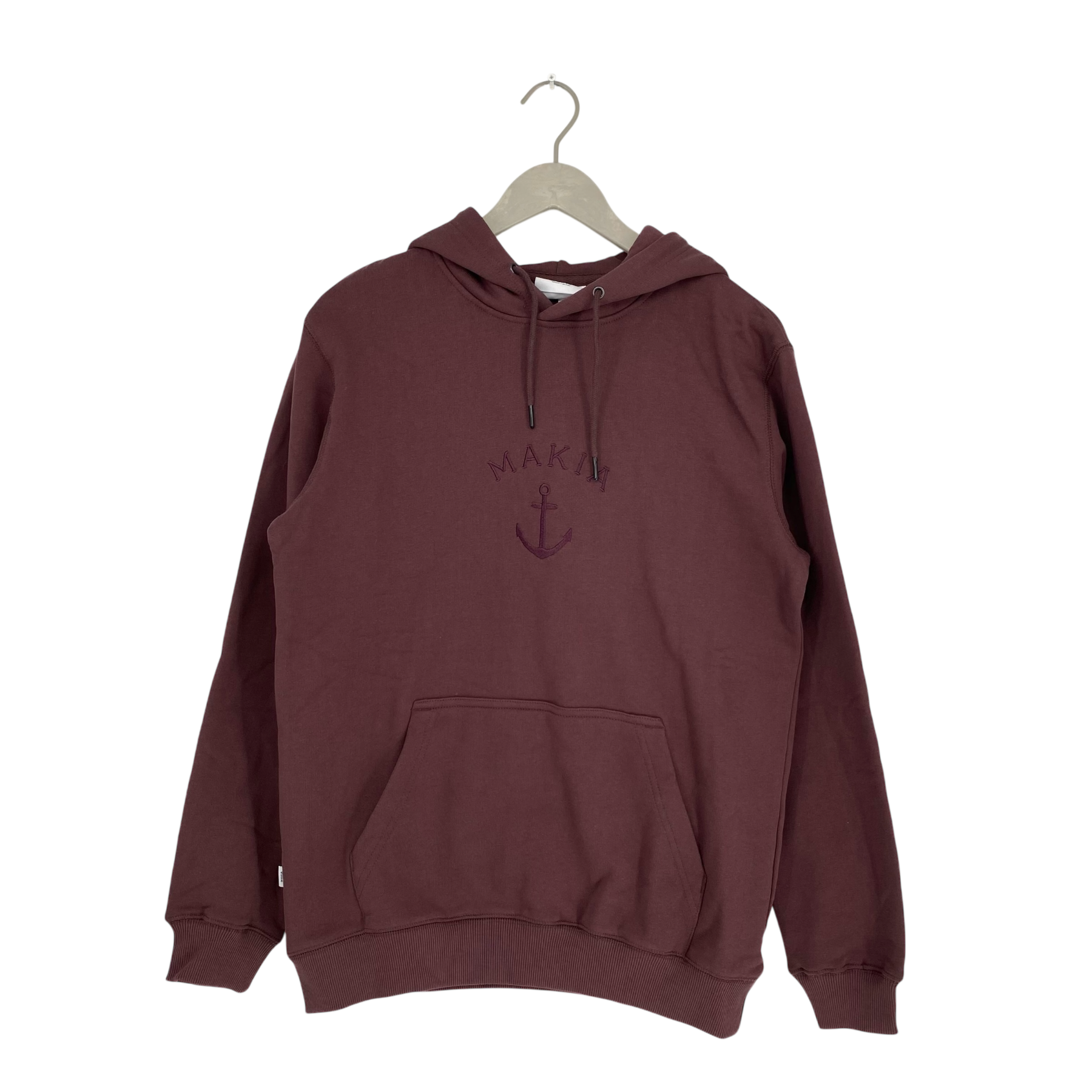 Makia Folke long sleeve hoodie sweatshirt is an athletic inspired hoodie with a "Makia" print in the front.