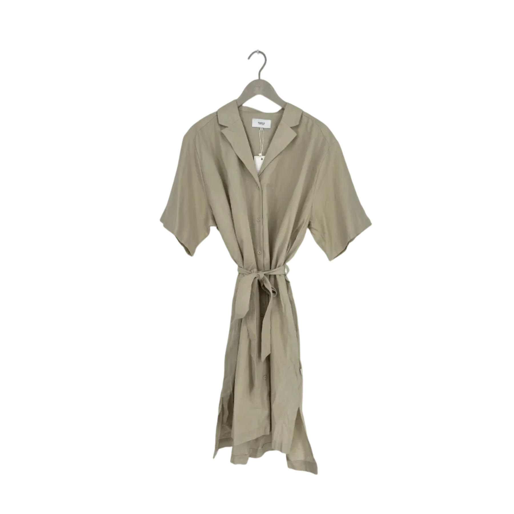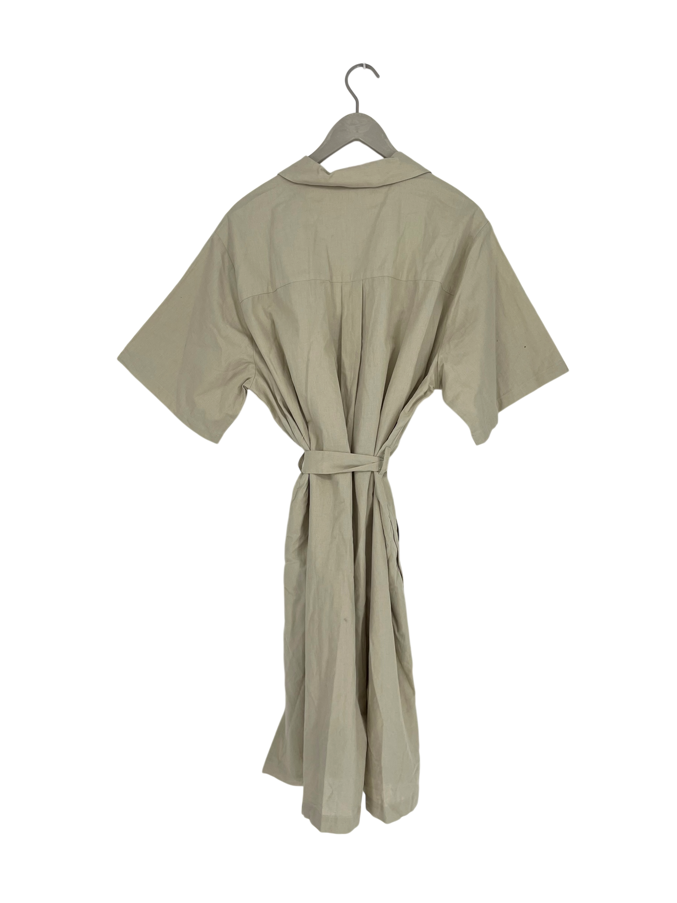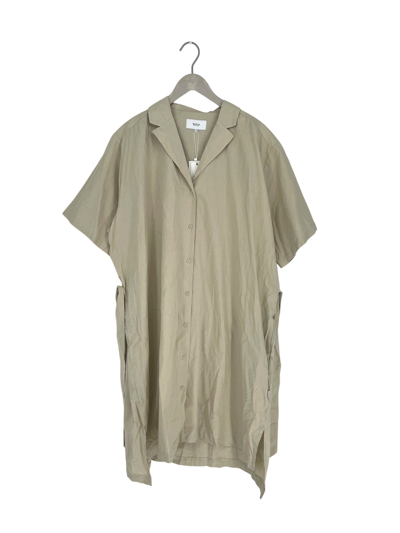 Makia linen blend dress with pockets on the sides and a detachable belt. Buttons all the way down the front.