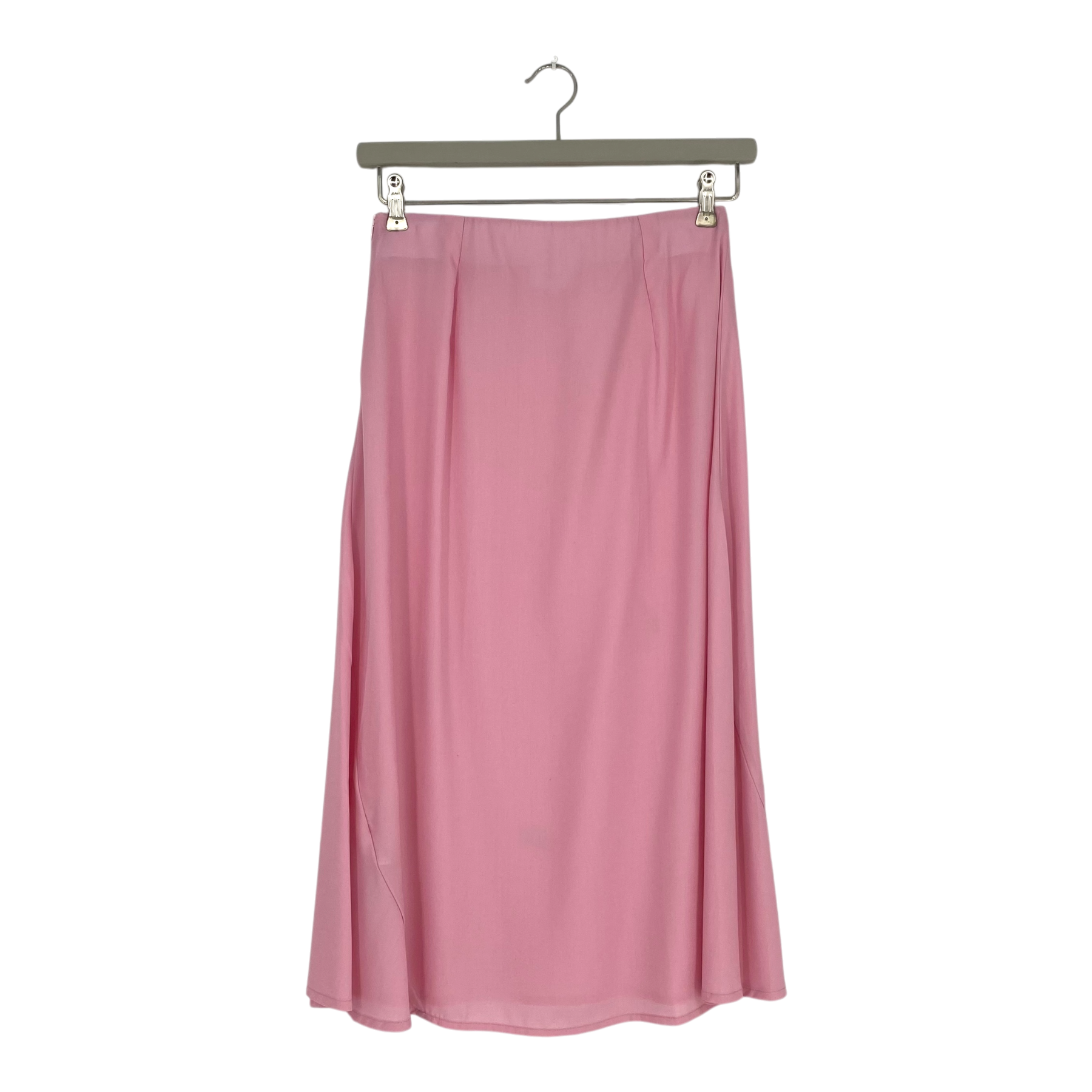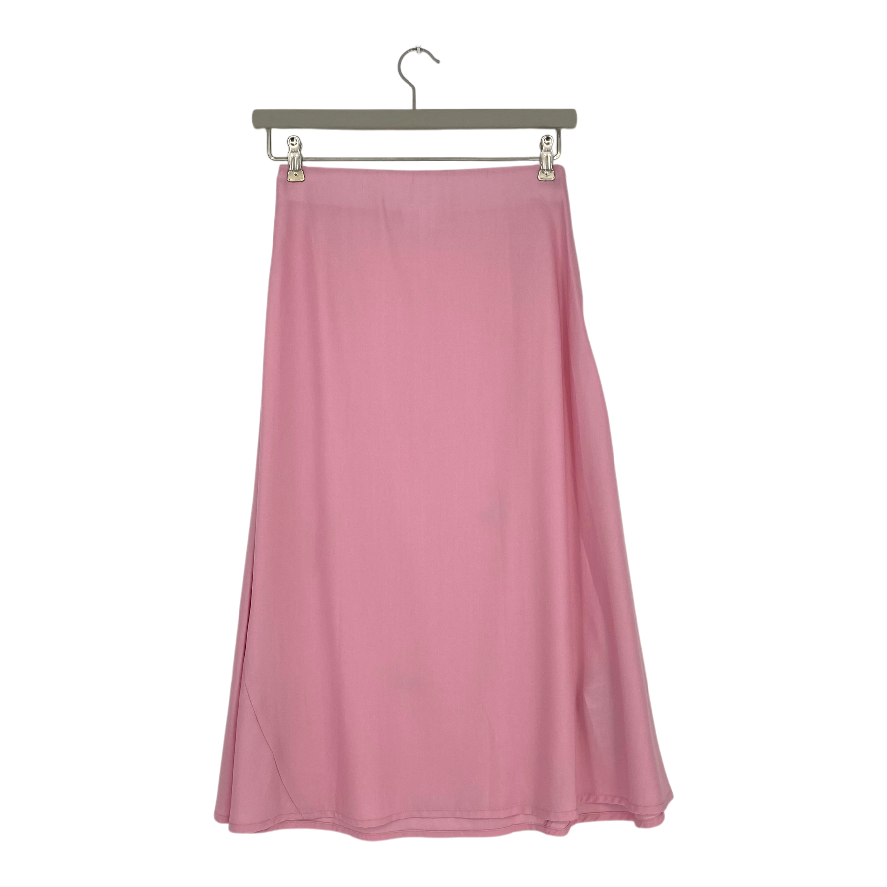 Makia Wave skirt has a fit-and-fluted silhouette with a curved side seam. Hidden zipper on side and hidden elastic band on waist. Unlined.