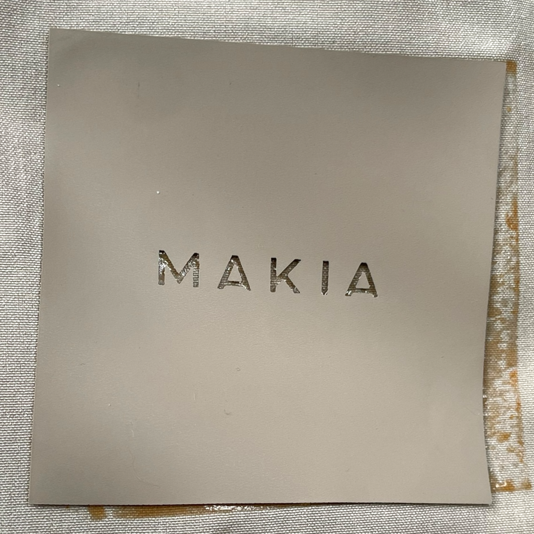 The jacket is otherwise in excellent condition with original tags still attached. There is a minor flaw: the Makia logo on the sleeve has shifted slightly during the application, and some adhesive is visible. Despite this, the jacket remains fully functional and stylish.
