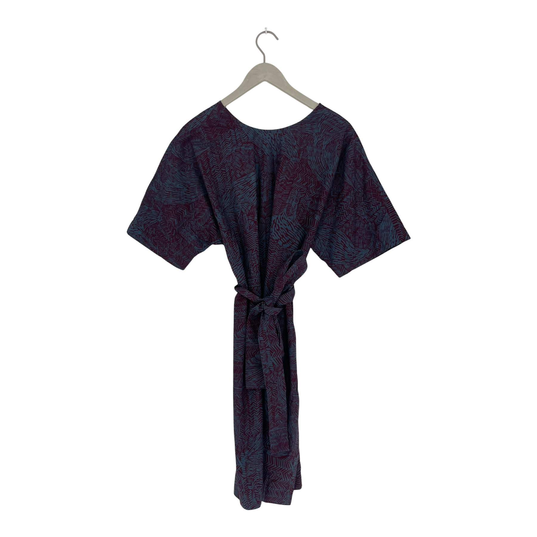 Marimekko Laurentii dress in the Otra print. The dress has short sleeves, a fabric belt and a round neckline with a v- drop on the back.