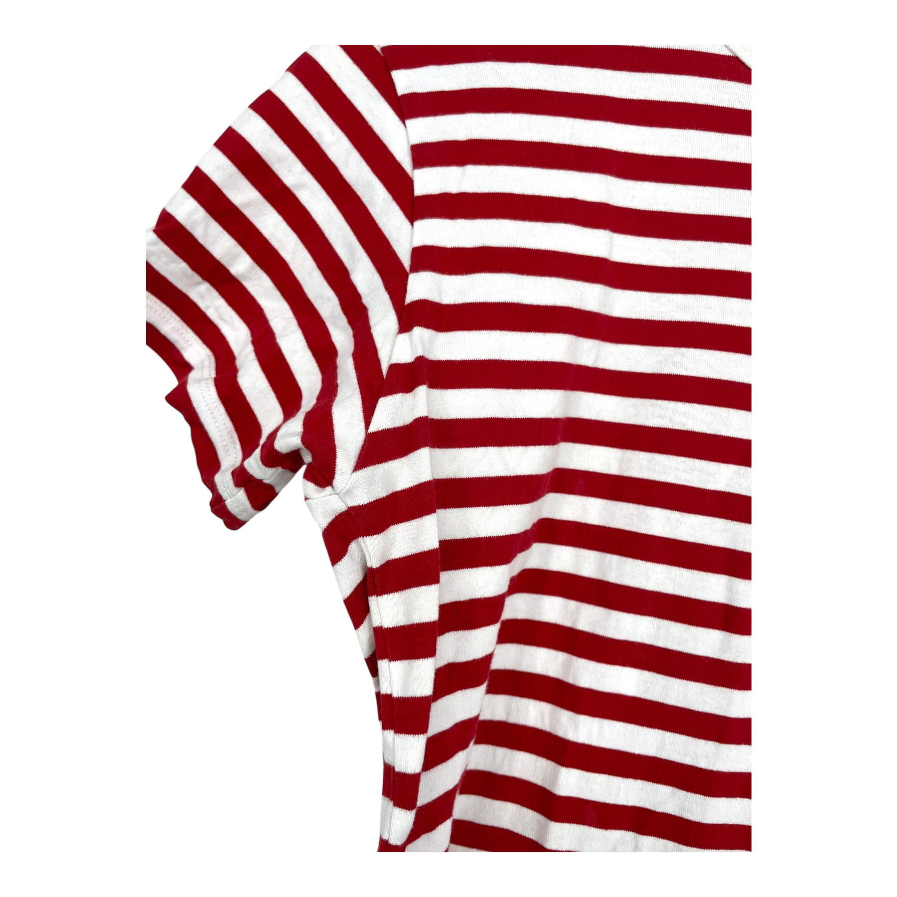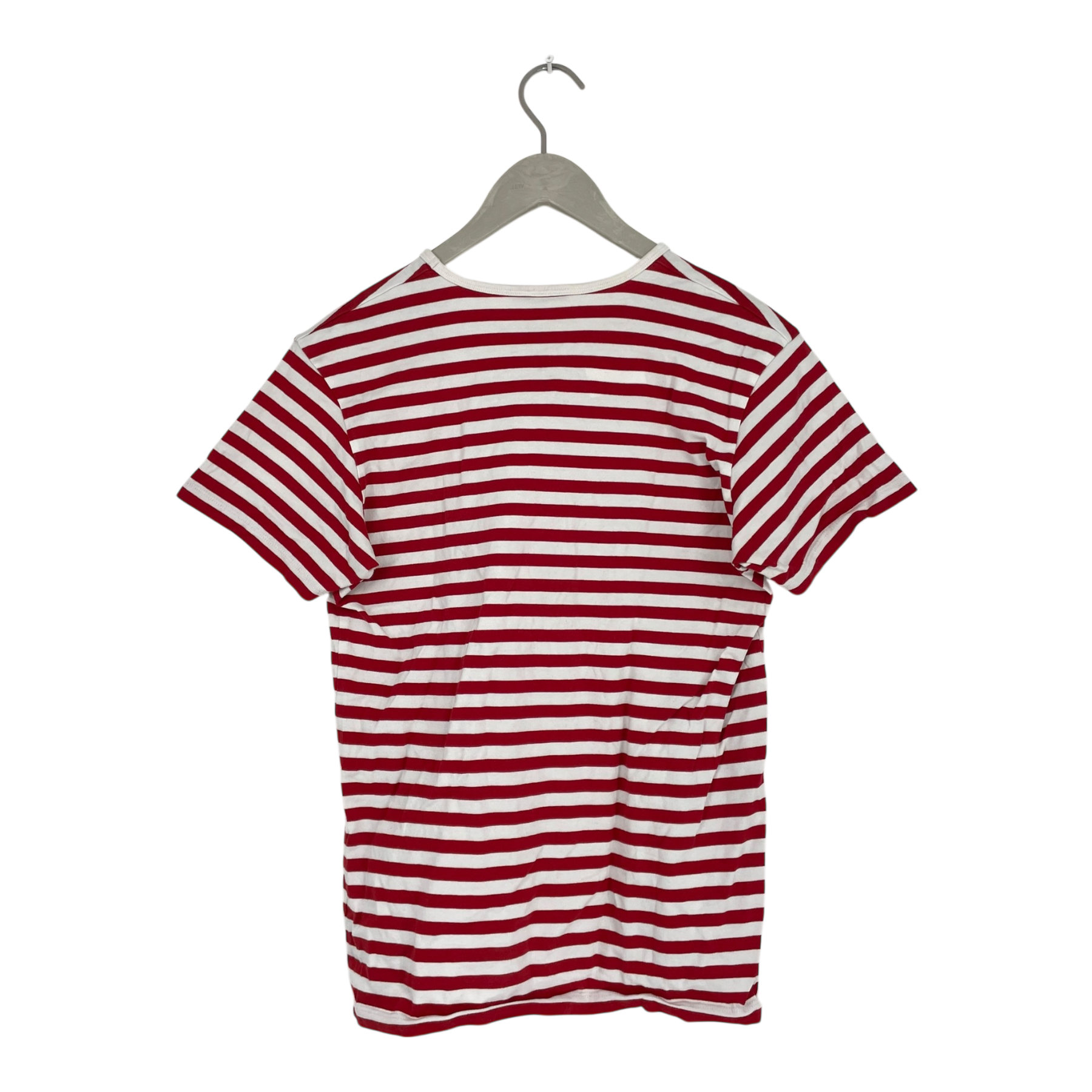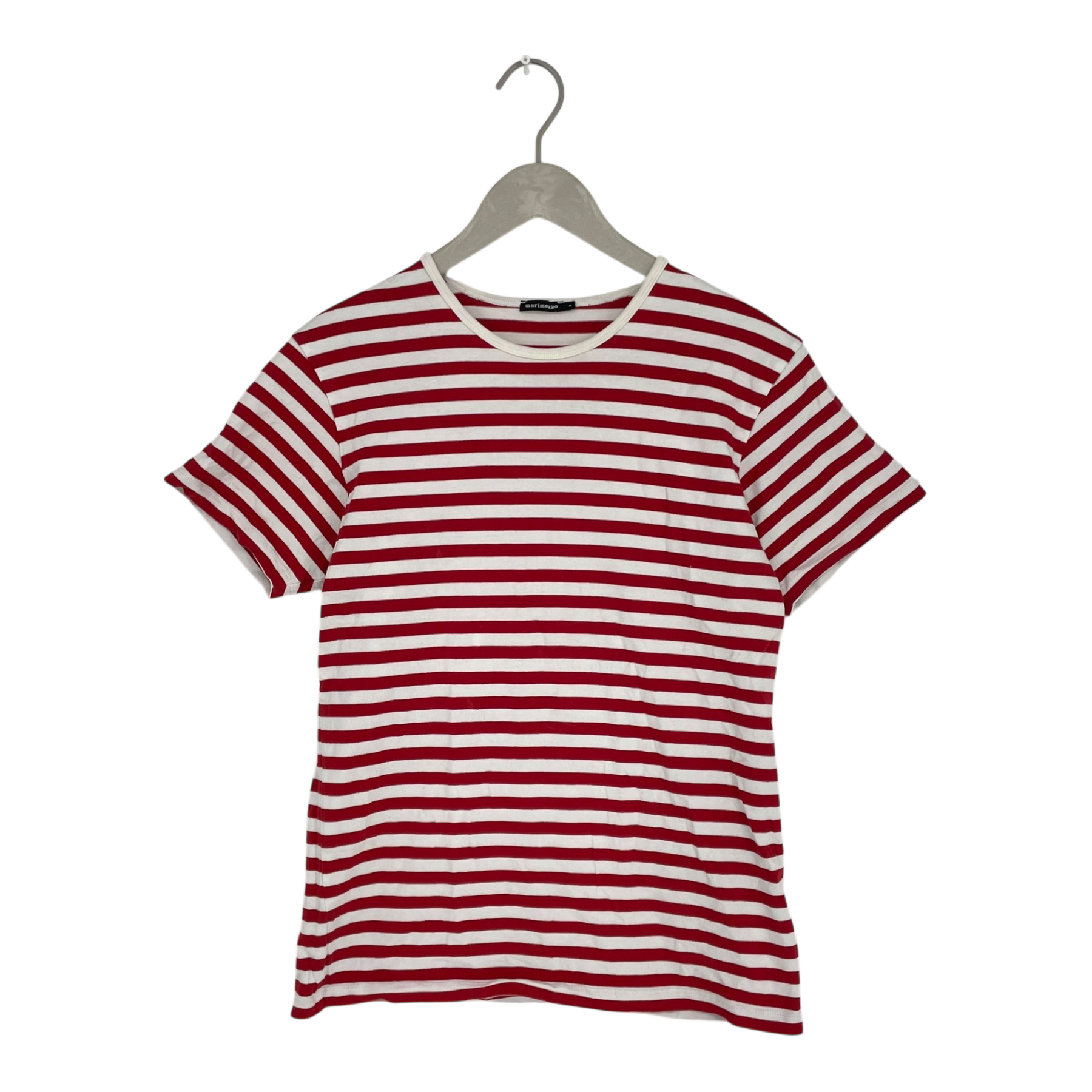 Marimekko short sleeve t-shirt with stripes. The surface of the fabric shows sign of wear and the laundry tag has worn off.