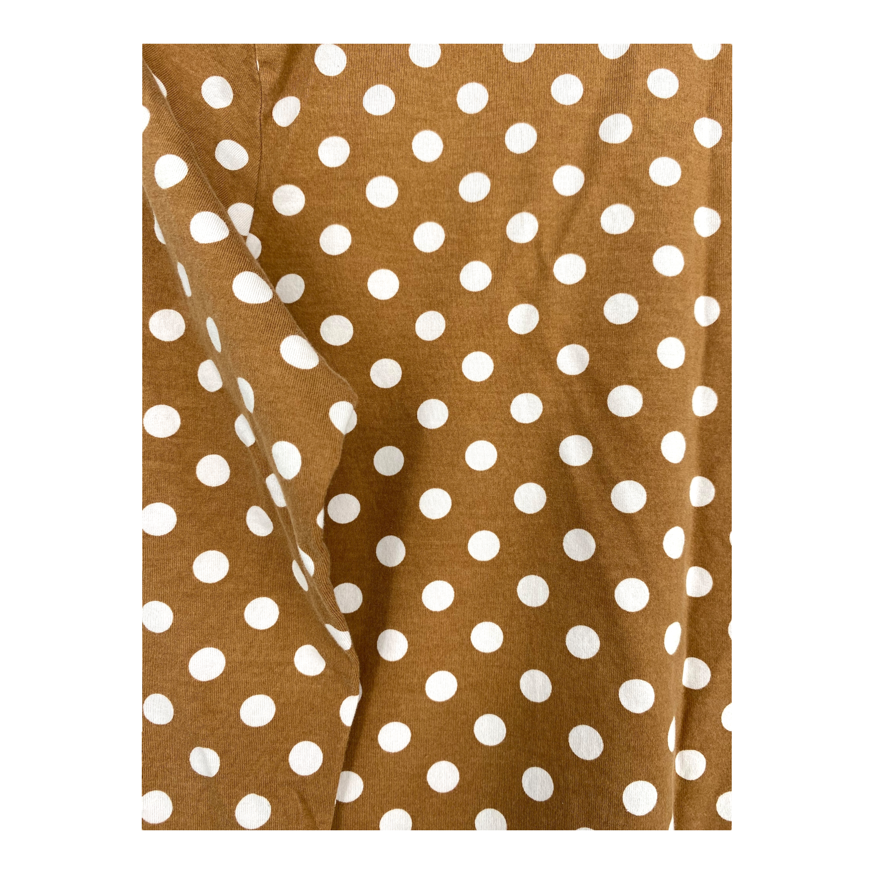 Marimekko Viisikko long sleeve tricot shirt in the Pallo polkadot print. The color seems to have somewhat bled to the white of the dots, or the original color of the dots is light pink.
