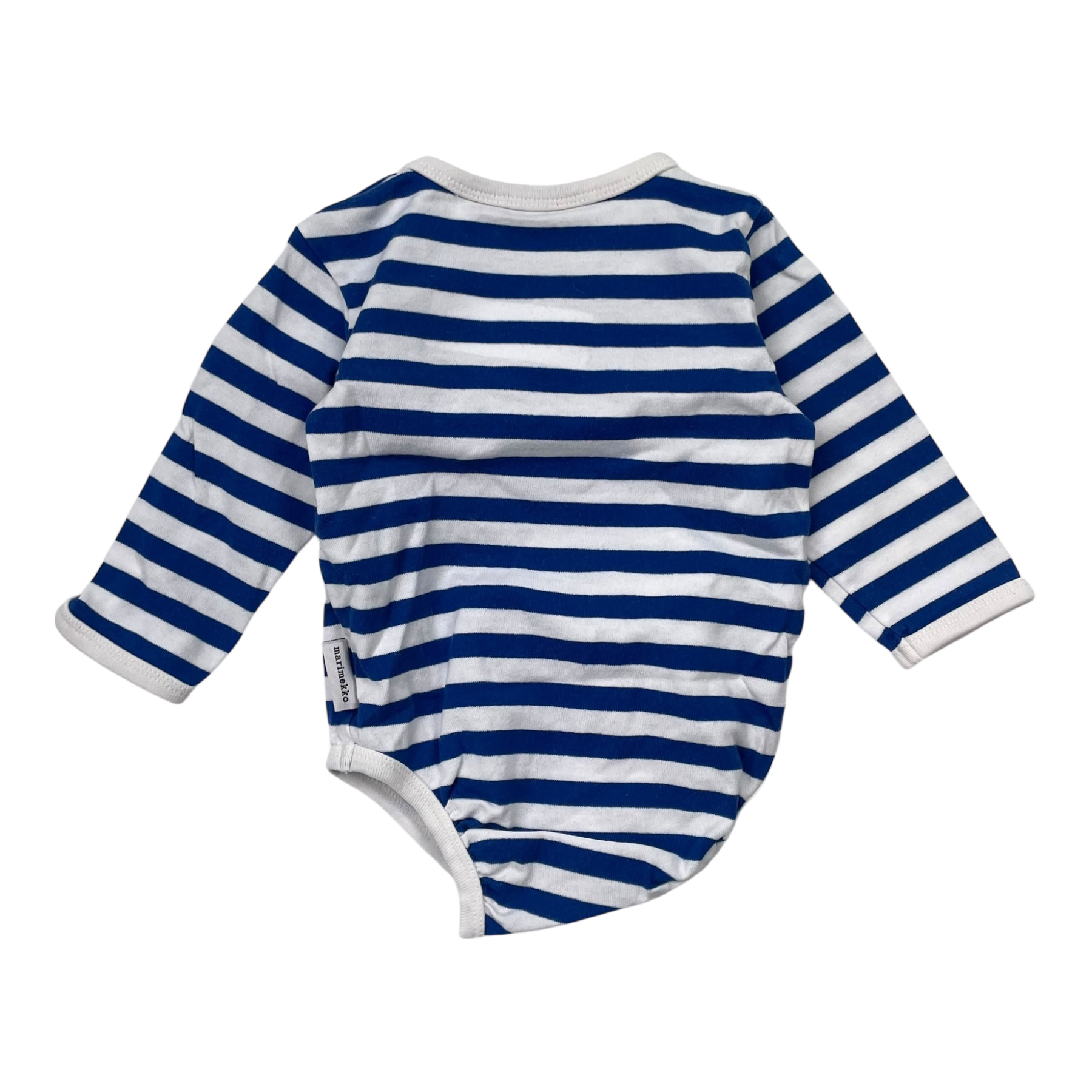 Marimekko Vinde long sleeve body in Tasaraita stripe print. Small stain on the neckline.
