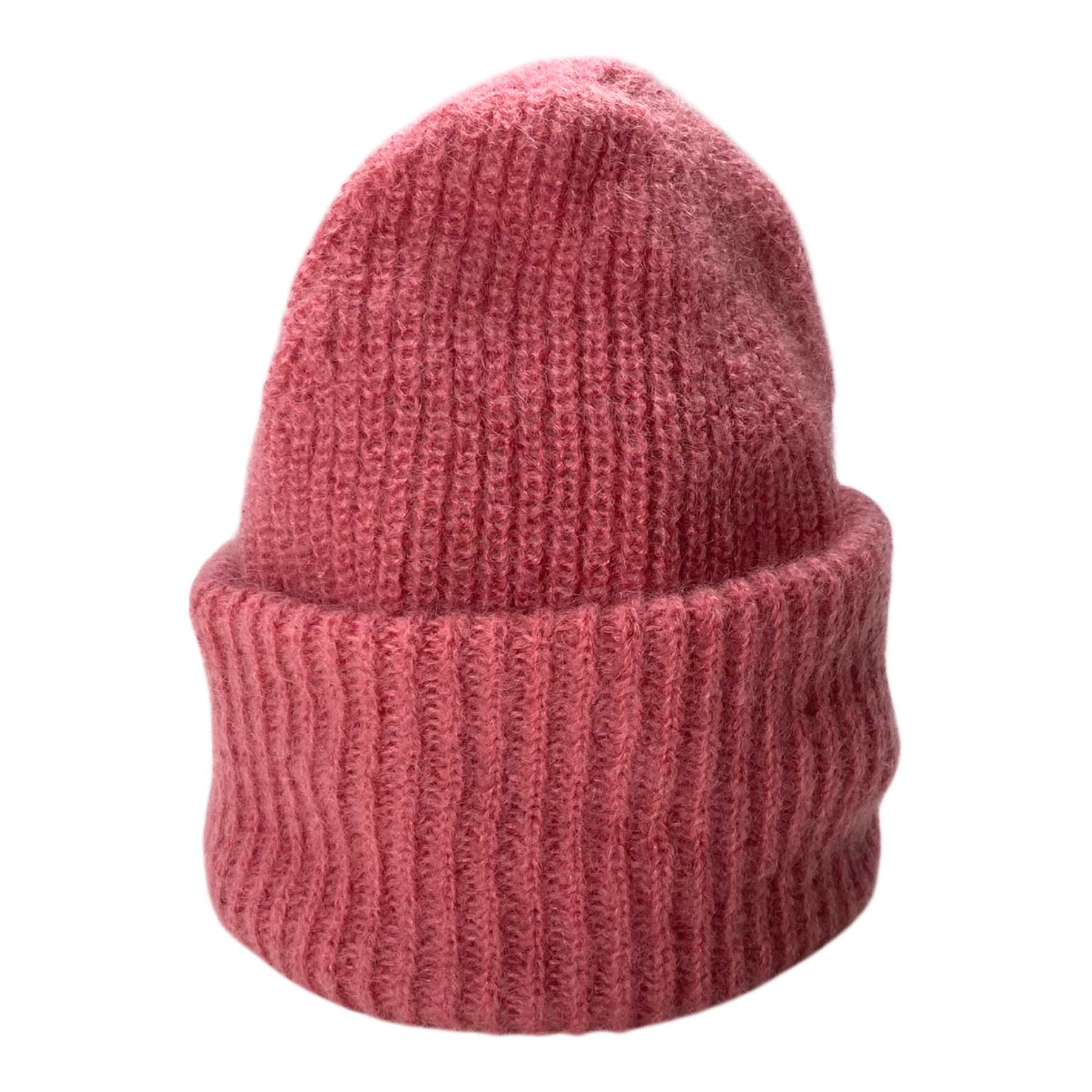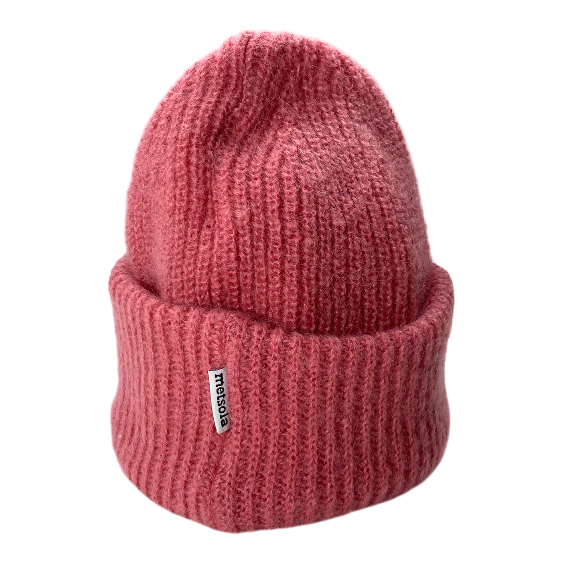 Metsola adult's onesize mohair beanie in peachy pink colour.