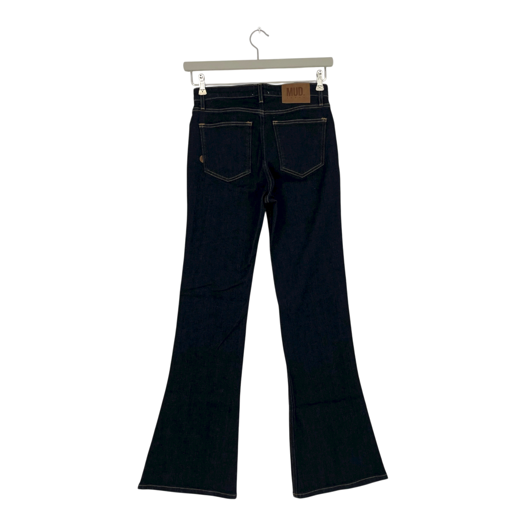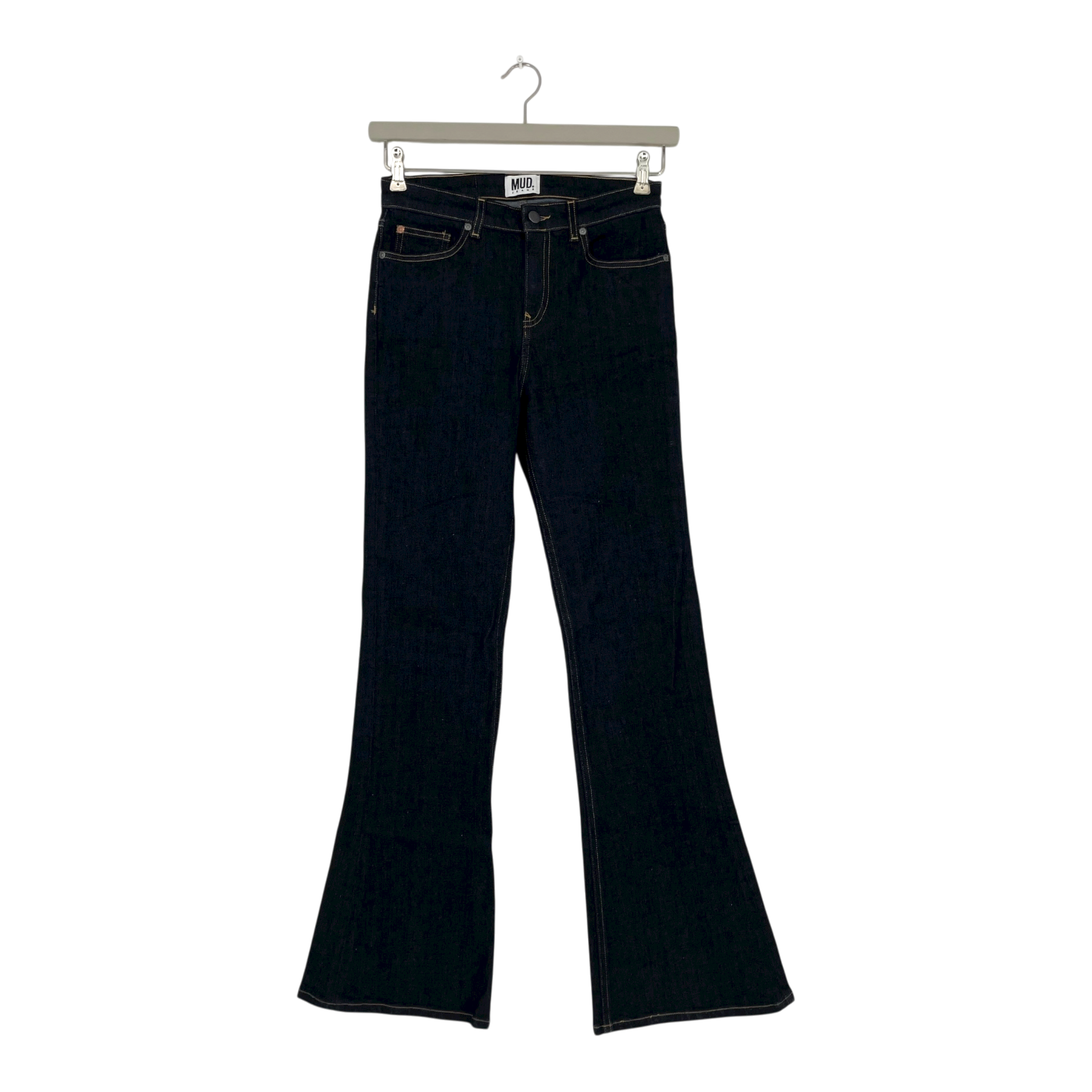 Mud Jeans Isy Flared jeans take a modern twist on a timeless flared fit. These jeans are high waisted with a long leg length.
