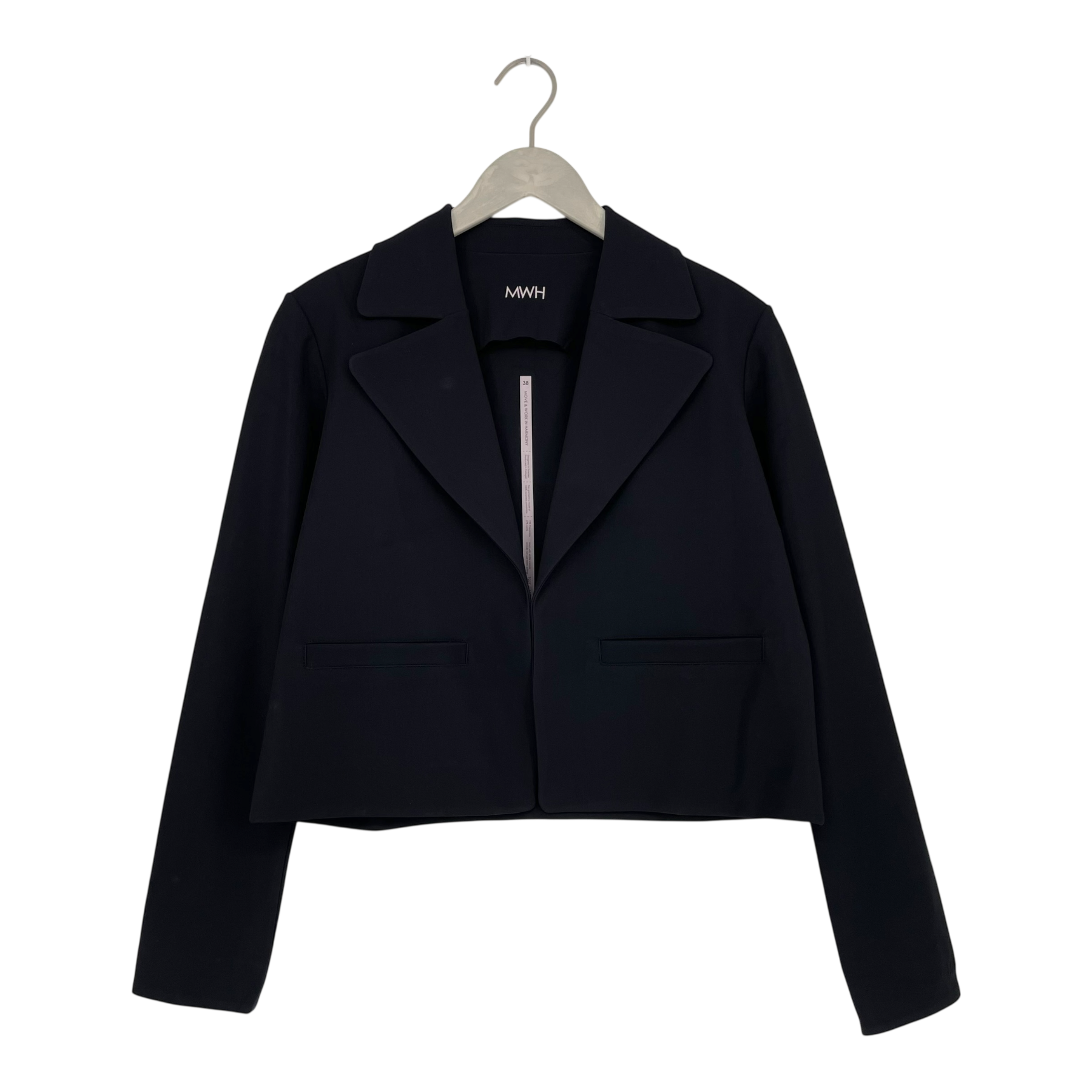 Move & Work in Harmony easy-to-wear Flow jacket with a relaxed fit. Inspired by the design of the pea coat with a more straight silhouette and wider collar and lapels. The Flow Jacket has a slightly shorter length and has no visible buttons.