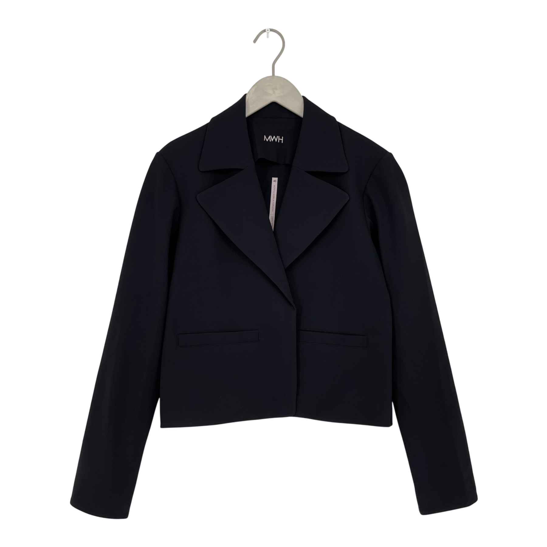 Move & Work in Harmony easy-to-wear Flow jacket with a relaxed fit. Inspired by the design of the pea coat with a more straight silhouette and wider collar and lapels. The Flow Jacket has a slightly shorter length and has no visible buttons.