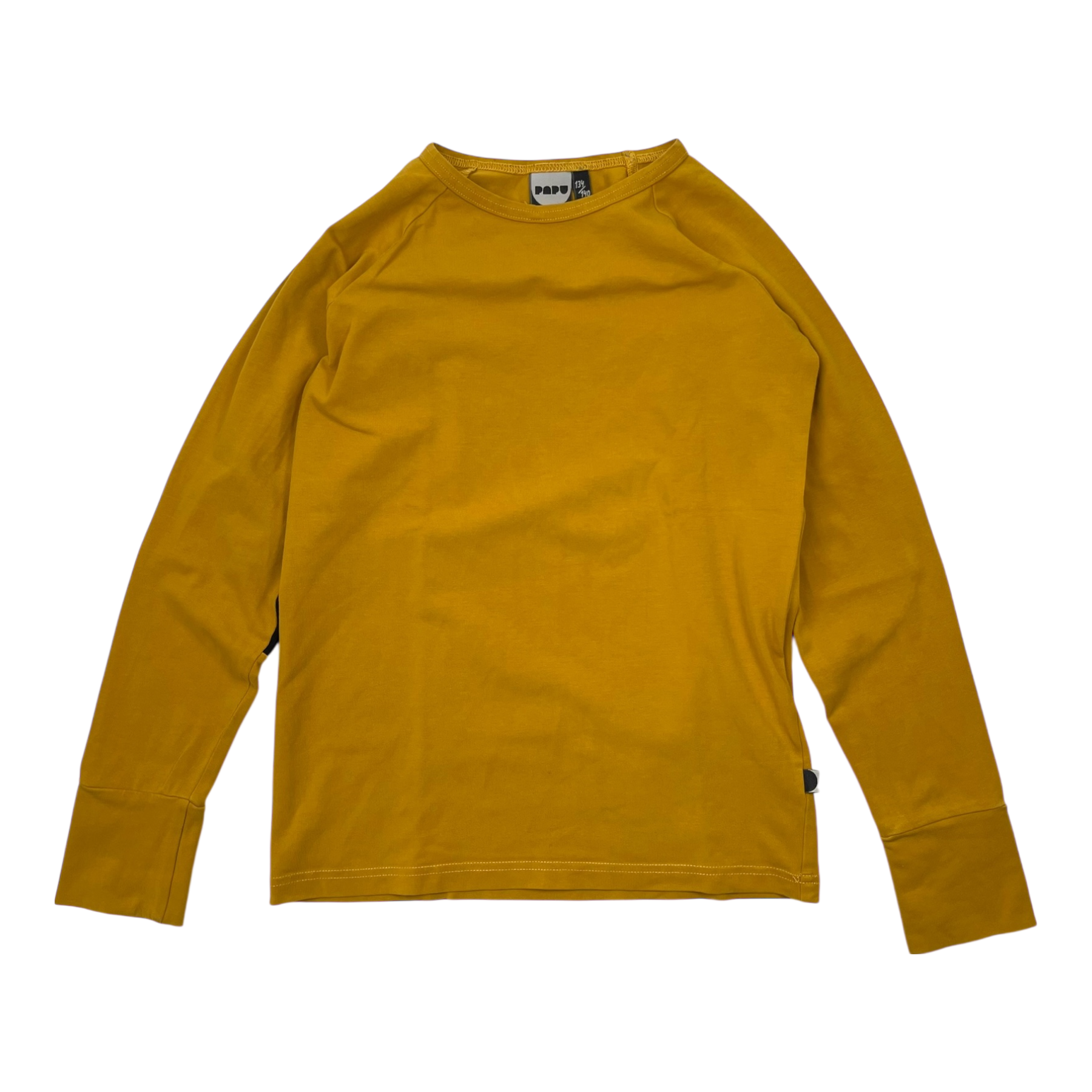 Papu classic long raglan sleeve shirt with contrast patches in elbows. Foldable sleeve ends and round neckline.
