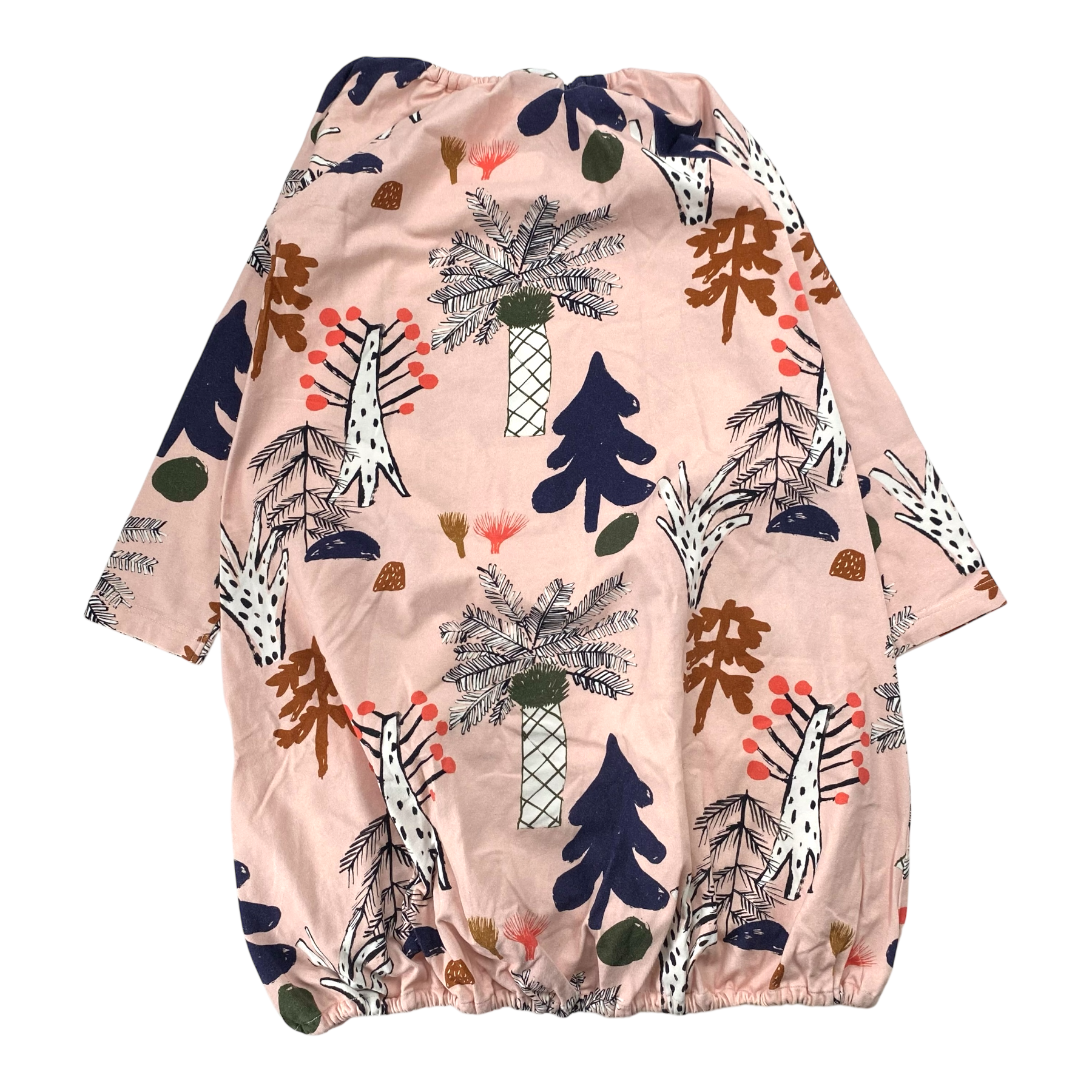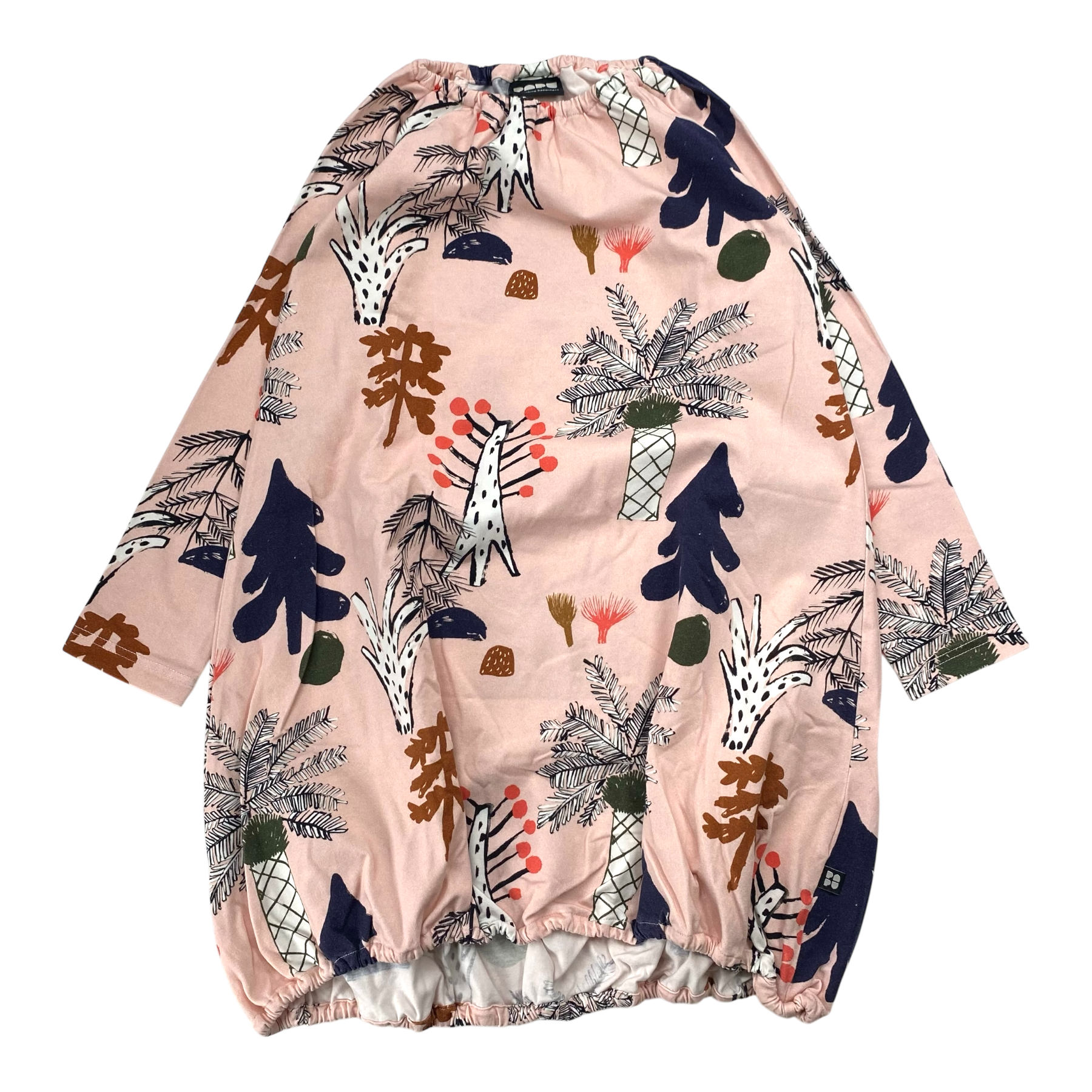 Papu tricot long sleeve dress with elastic hem and neckline and a forest print.