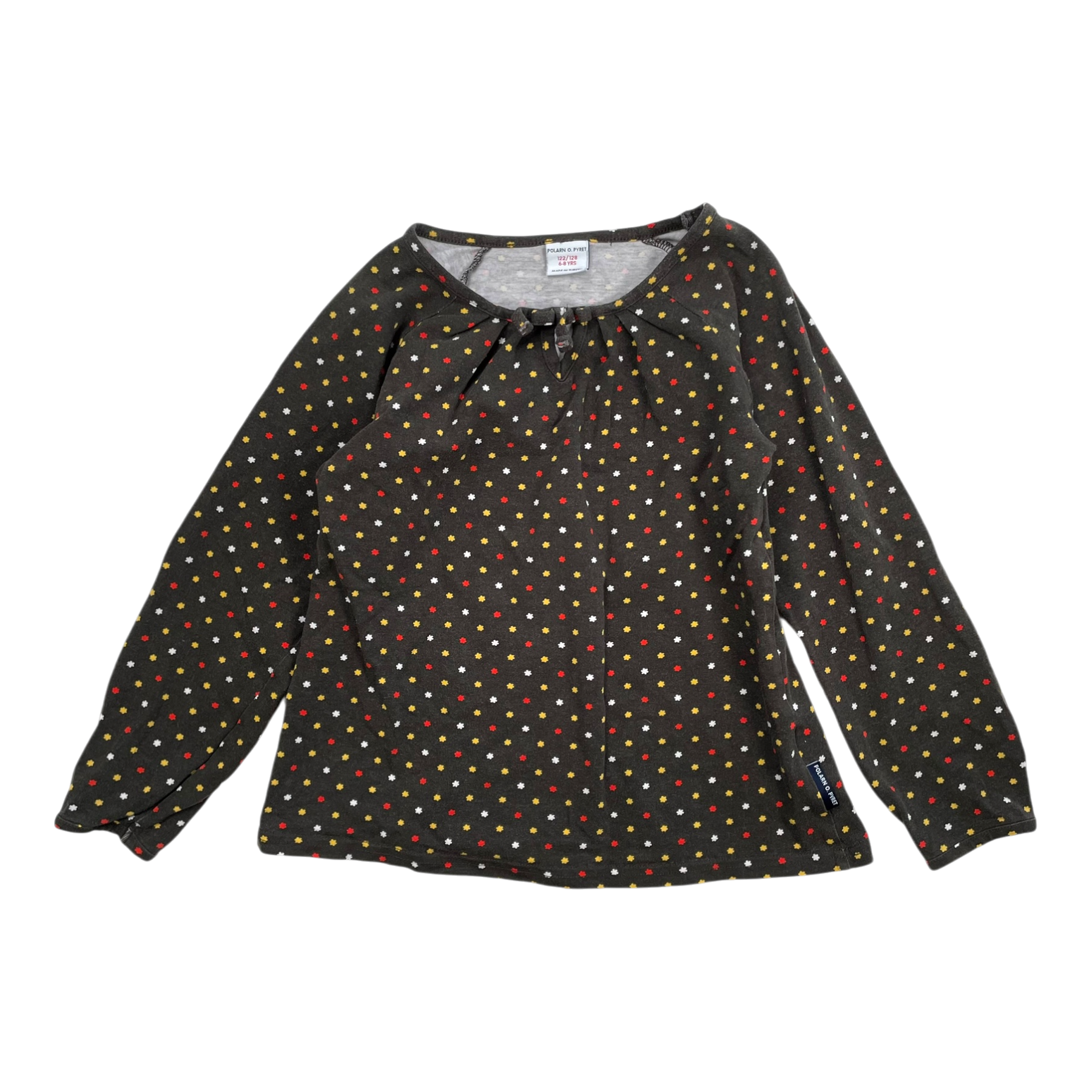 Polarn O. Pyret long sleeve shirt in with a detailed neckline.